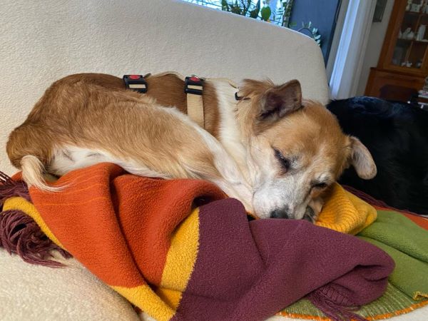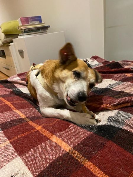Levio, bei uns Levi gerufen, ist seit Mitte November 2023 auf Pflegestelle und hat sich toll entwickelt. Sylvester hat er super gemeistert. Er ist viel weniger ängstlich und geht inzwischen auch an der Straße entspannt an der Leine. Er schaut sich von den anderen Hunden in seinem Rudel vieles ab und probiert es dann vorsichtig selbst aus. Er dreht sich bei Freude um sich selbst und tobt inzwischen auch mal kurz von A nach B. Levi ist so anhänglich und verschmust, dass er vom Sofa nicht mehr wegzudenken ist.
