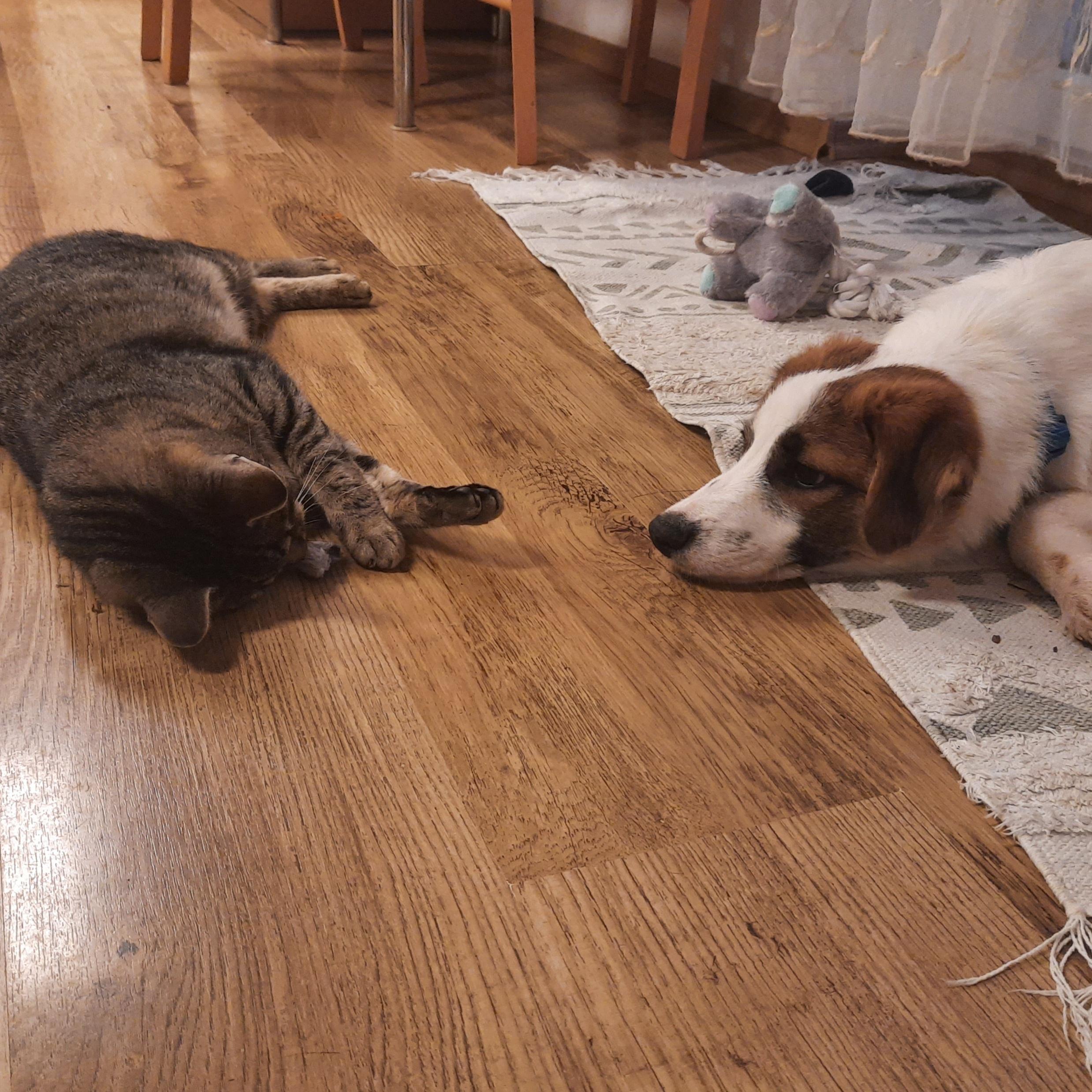 Am Anfang fand er die Sicherheitsleine nicht ok, aber inzwischen lässt er sich diese ohne Probleme anziehen und wir spazieren los. Da seine Kondition noch nicht auf dem Höchstniveau ist, braucht er beim Laufen ab und zu eine kurze Pause, das wird aber Tag zu Tag besser.