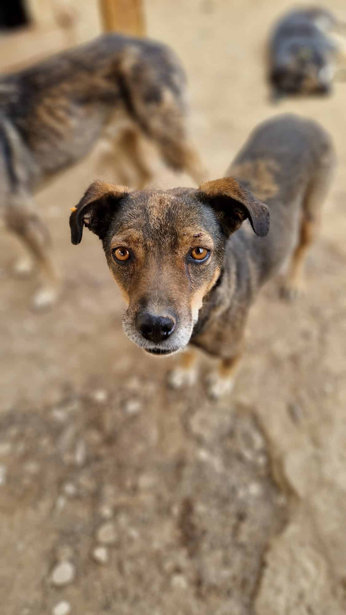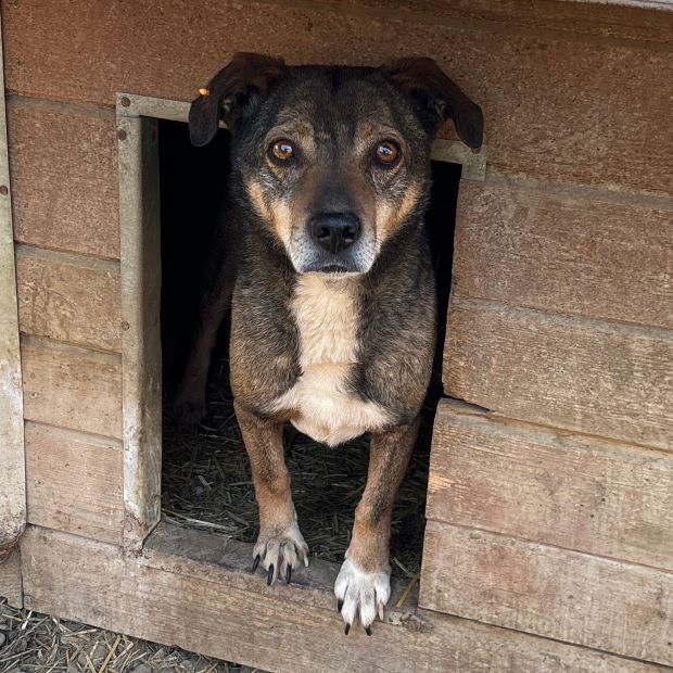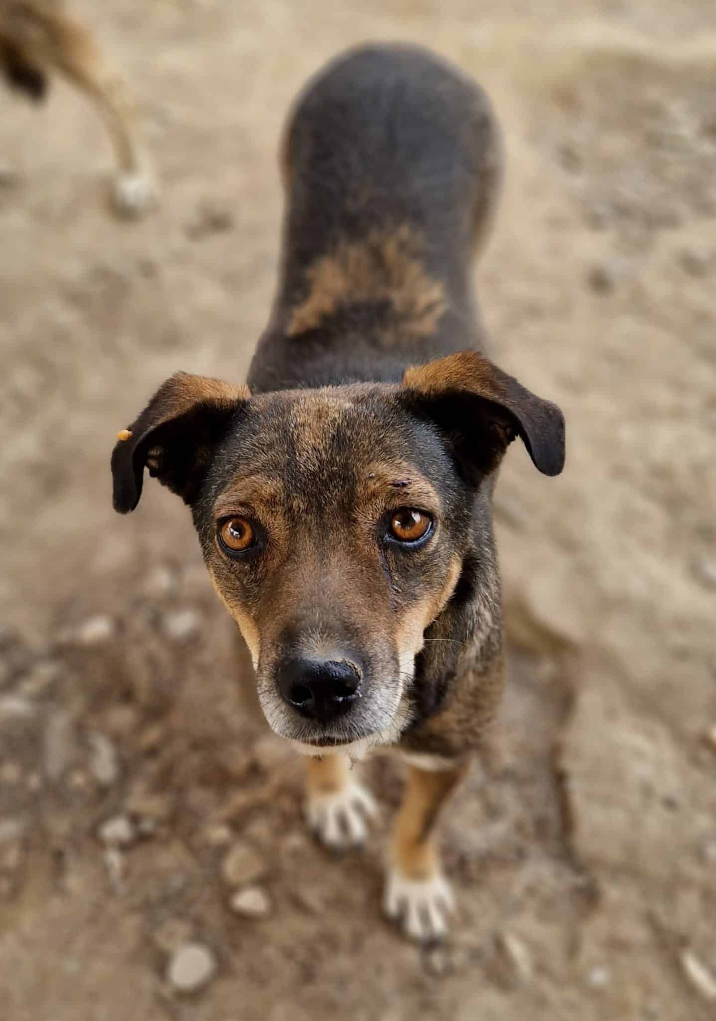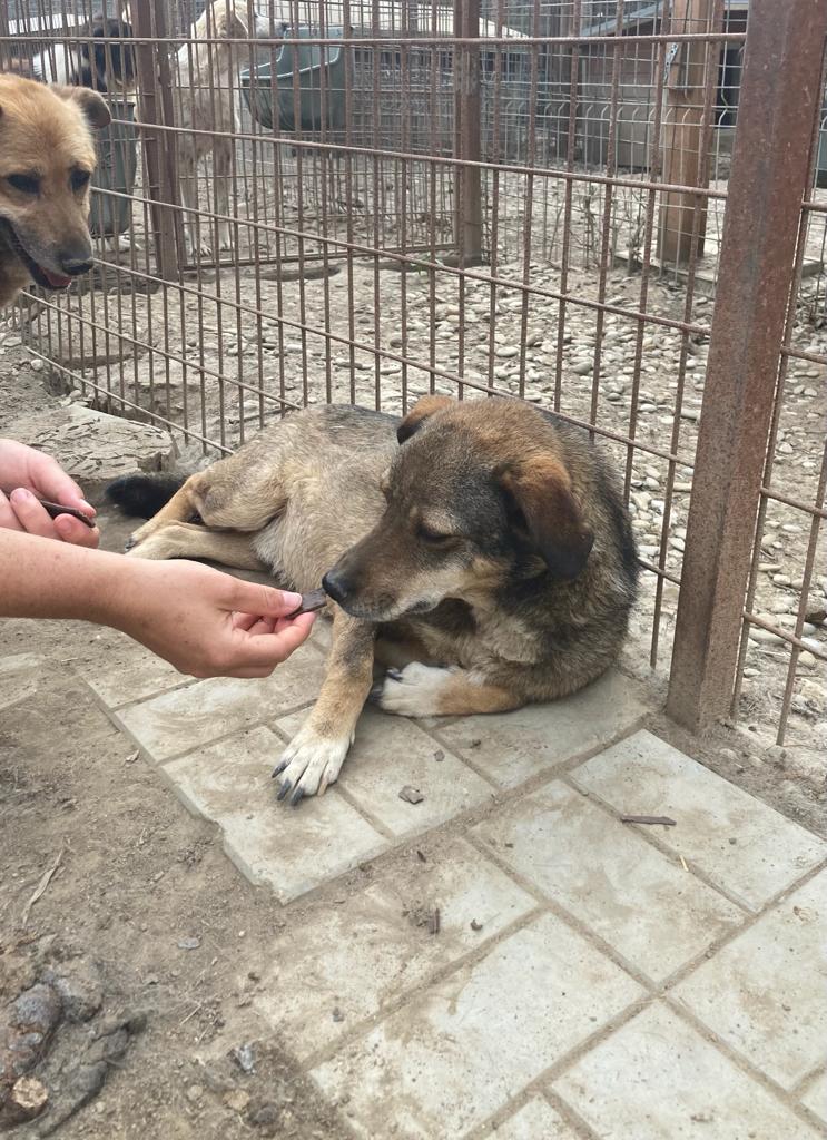 Der kleine LEWI suchte als erster in seinem Kennel Kontakt zu uns, ist aber insgesamt noch unsicher. Er nahm mit etwas Zeit Futter aus der Hand, im Kennel stehend wich er aber aus, wenn man direkt auf ihn zuging. Er suchte aber immer wieder mit Blicken den Kontakt. In der Hütte ließ er sich behutsam streicheln. Man spürte allerdings, dass er dabei noch verunsichert war, ob ihm nicht doch etwas Schlimmes passiert. Ein rührendes Kerlchen, das so gerne vertrauen möchte und dies in einer anderen Umgebung sicherlich auch bald könnte.