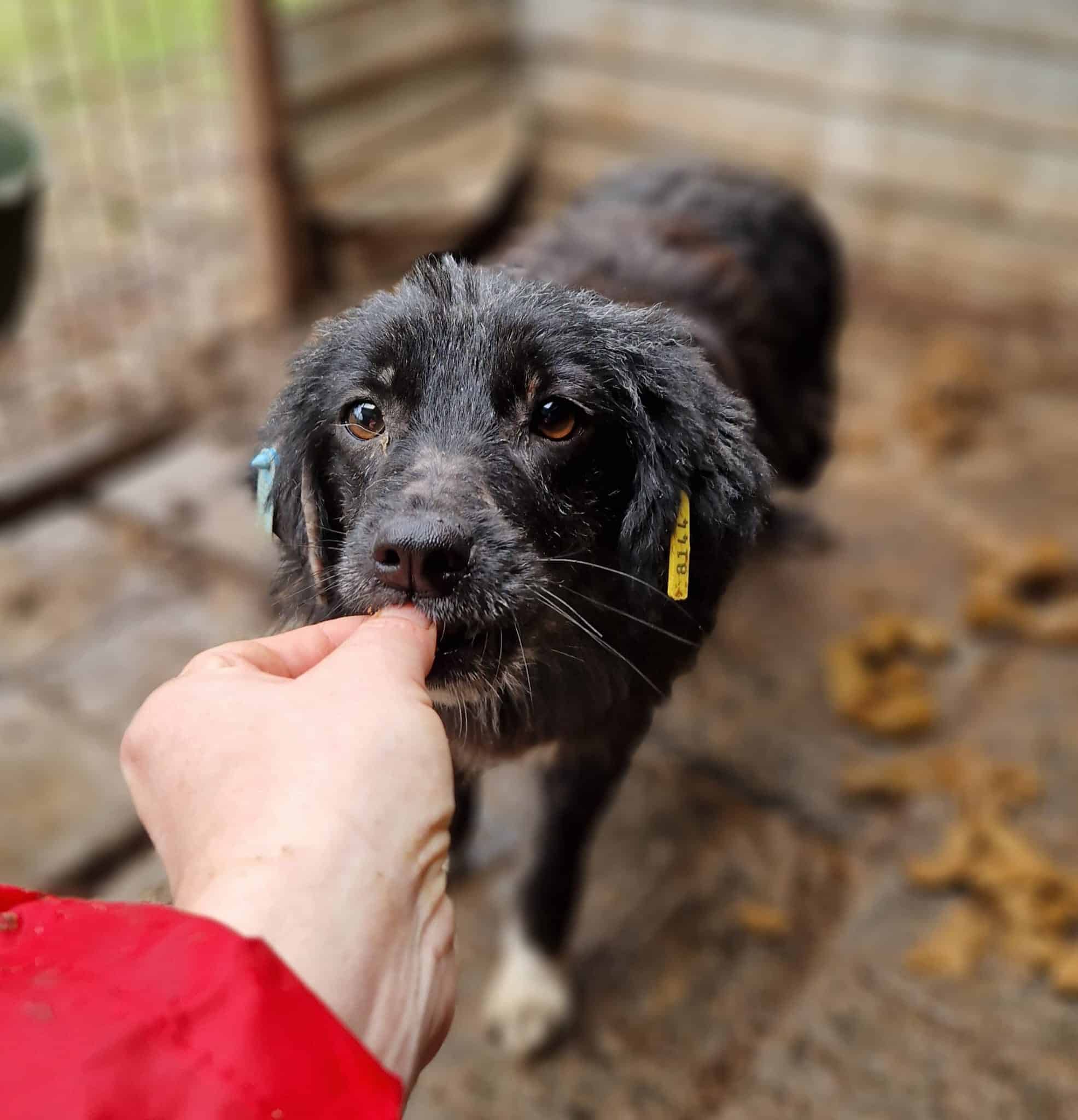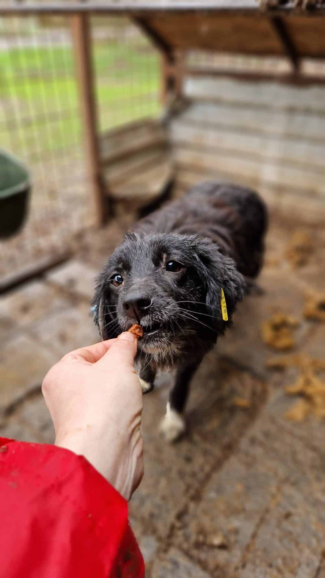 LEYA hat leider immer noch Hautprobleme. Sie ist weiterhin unsicher, aber durchaus neugierig und interessiert an Menschen. Sie nimmt Futter aus der Hand, lässt sich dabei vorsichtig an der Schnauze berühren, hält aber immer einen kleinen Sicherheitsabstand. Anfassen konnten wir sie weiterhin nicht, da weicht sie noch aus.