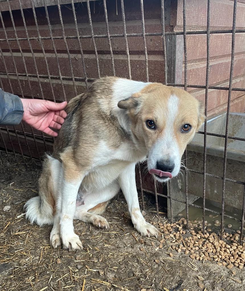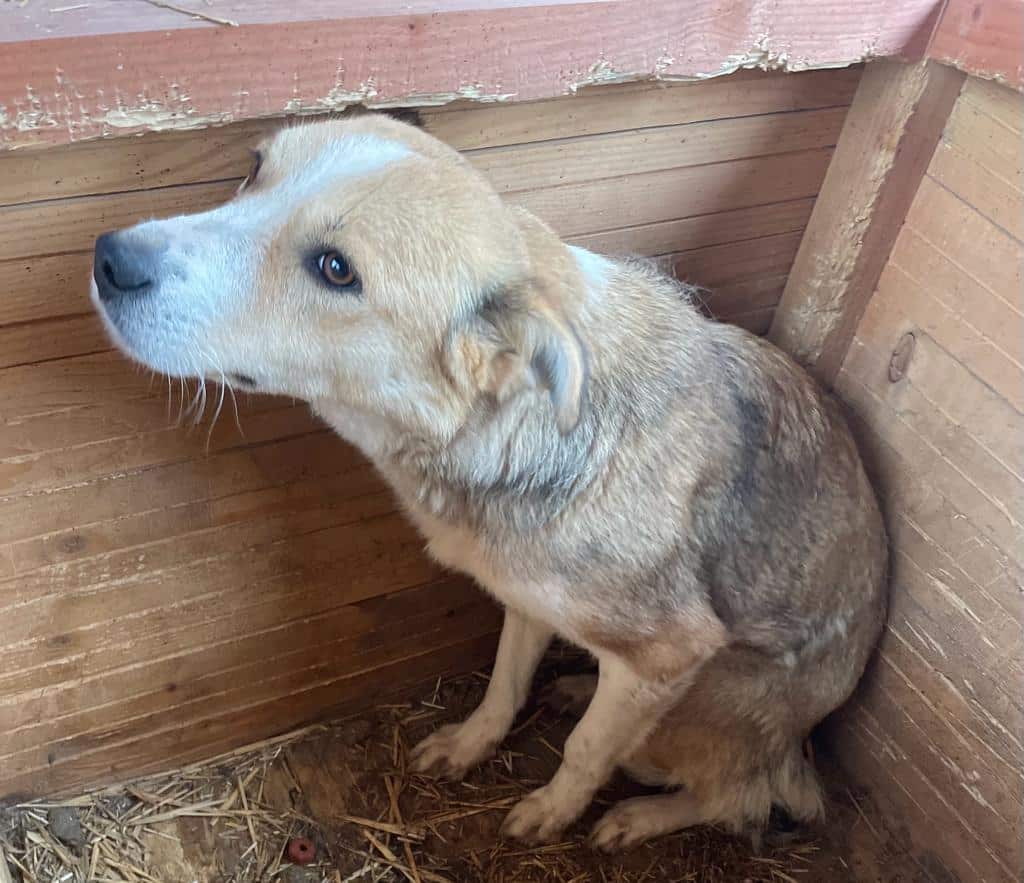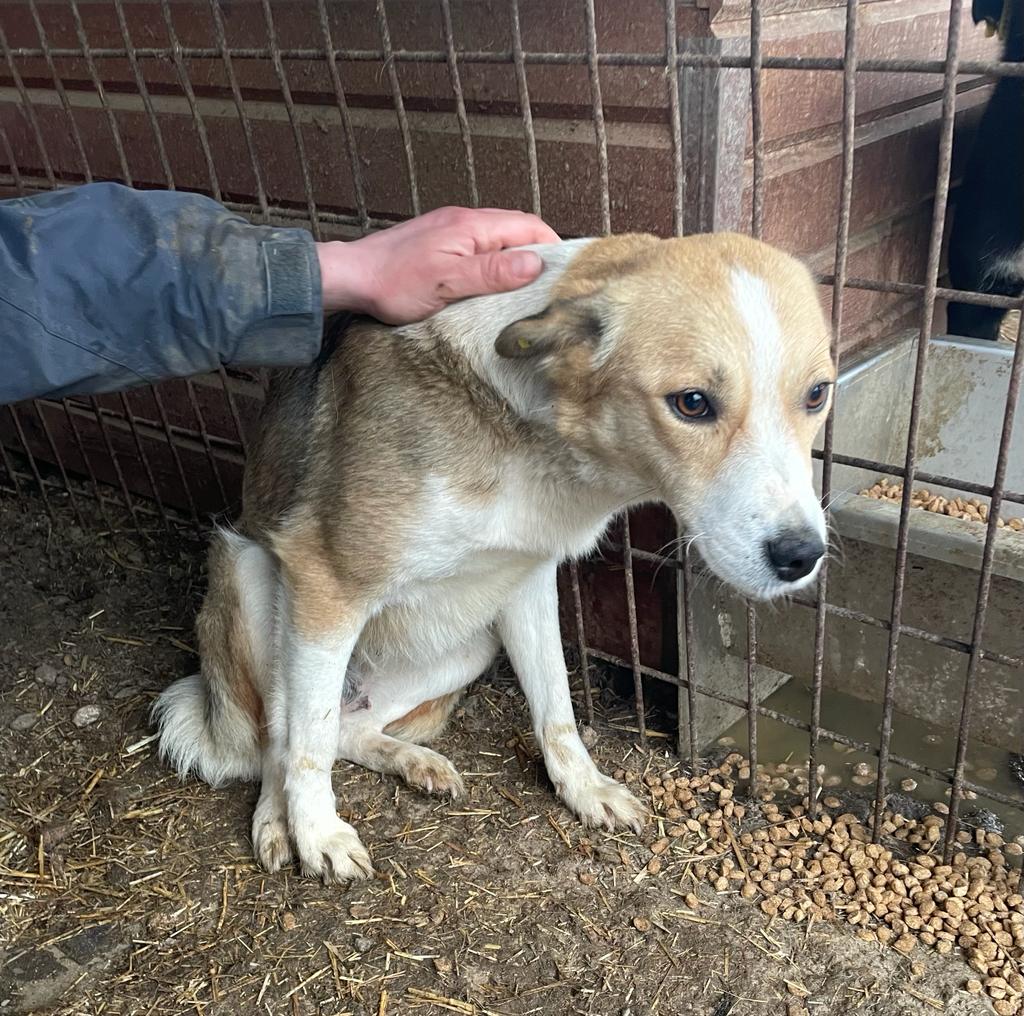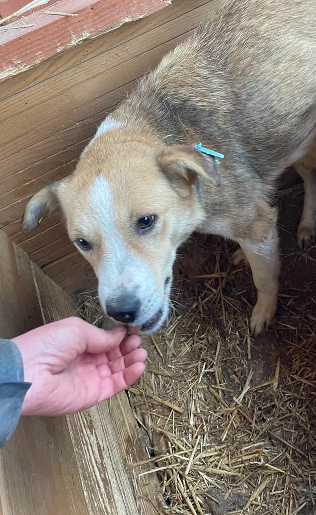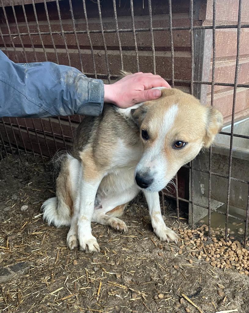 Als wir in den Kennel kamen, war sie erstmal recht zurückhaltend und schien den positiven Kontakt zum Menschen einfach nicht zu kennen. Als wir sie in der Hütte bedrängten, nahm sie Leckerchen aus der Hand und war gut anfassbar, konnte es aber noch nicht wirklich genießen. Sie sollte schnell Anschluss an den Menschen bekommen und wird dann sicher auch ganz auftauen.