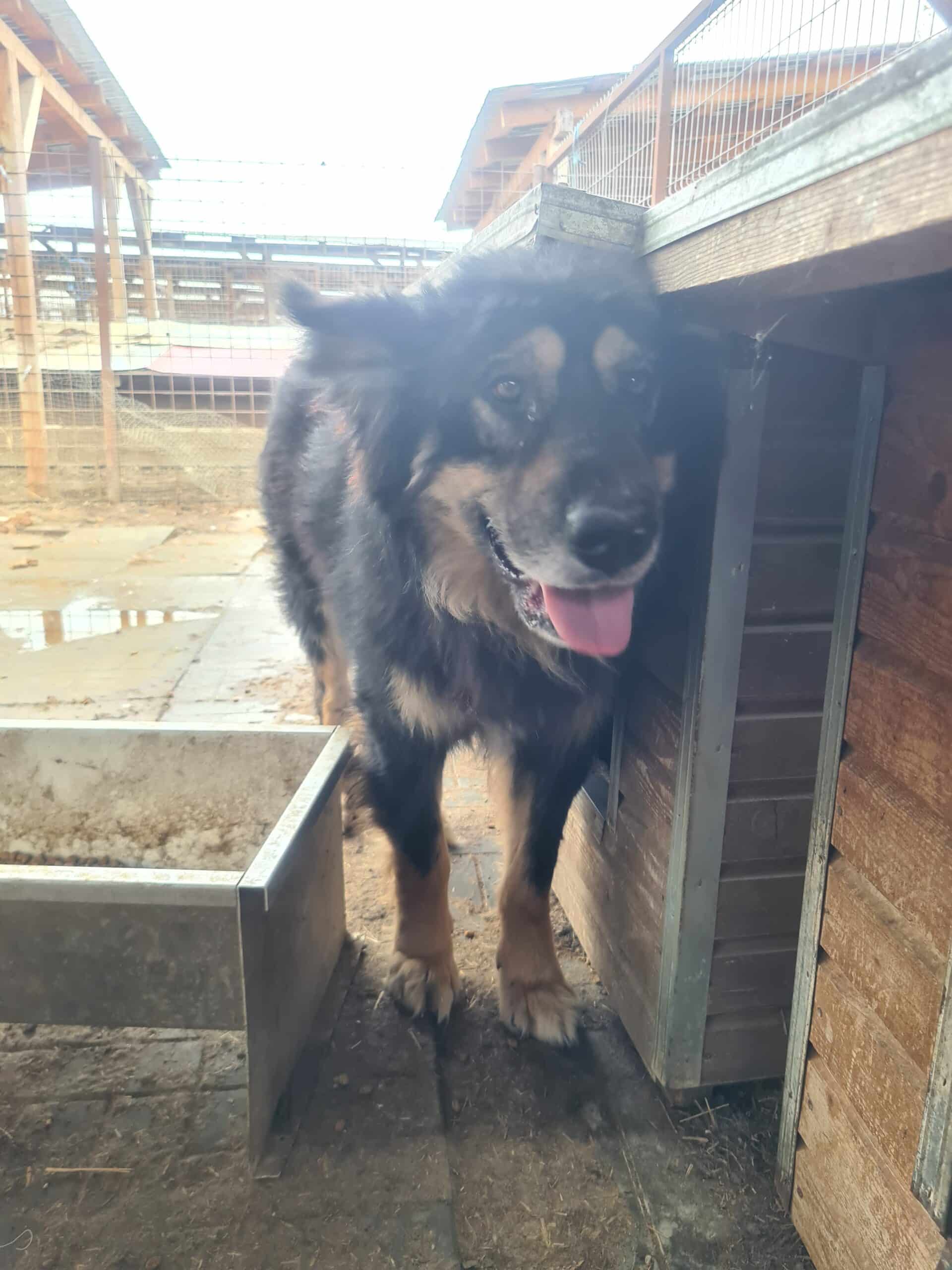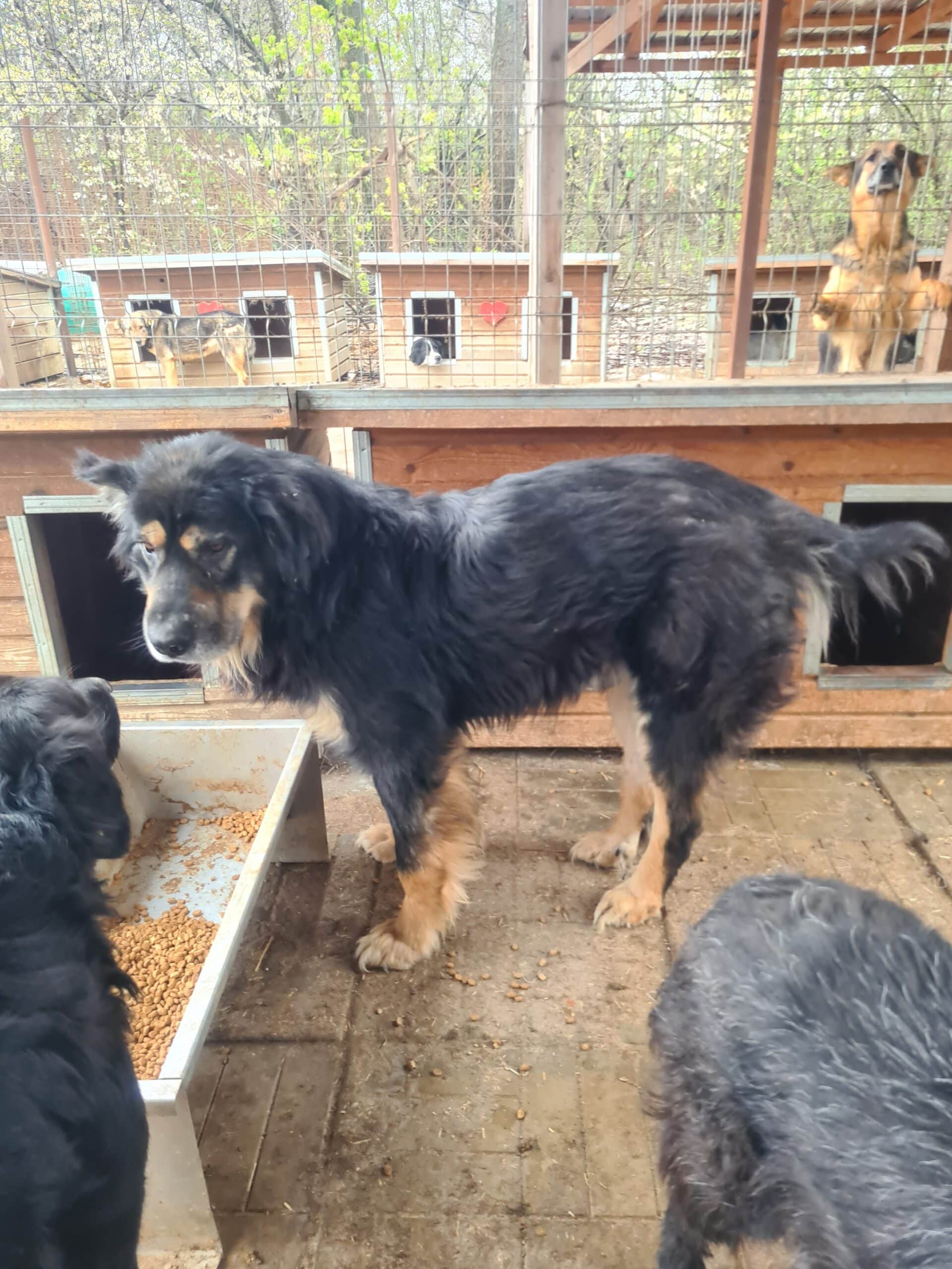 kam aus der Hütte, als die anderen Hunde abgelenkt waren, und hat gefressen