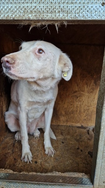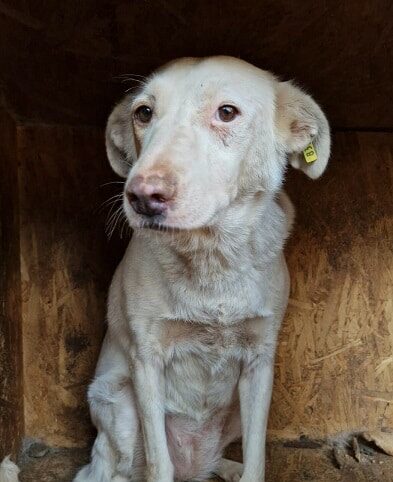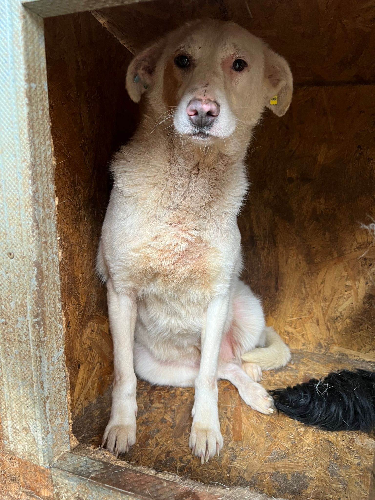 LIBA ist eine ganz sanfte Hündin, die sehr unter dem Stress in Bucov leidet. Sie saß ausschließlich in der Hütte, um etwas Schutz vor dem Trubel zu haben. Ihre Seele leidet, das sieht man ihr einfach an.