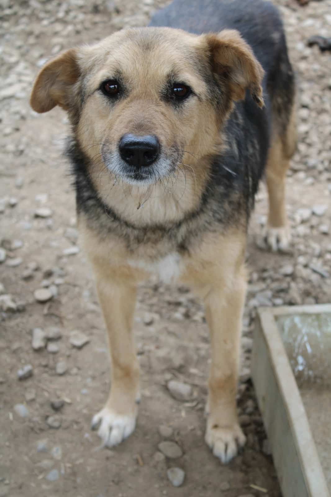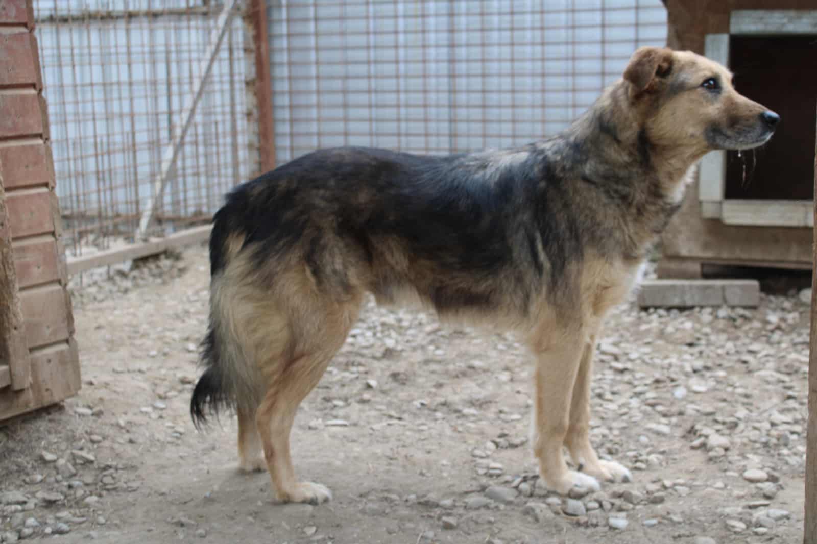 Der zarte, entspannte Rüde lässt sich gut streicheln und freute sich über die Leckerlis, die er vorsichtig aus der Hand genommen hat. Er machte auf uns einen eher ruhigen, besonnenen Eindruck und zeigt sich in seinem Kennel verträglich.