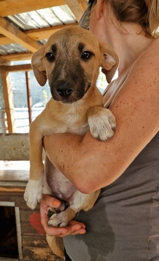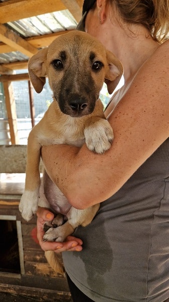 Die zarte LIENA sitzt noch immer mit ihren Geschwistern in einem Kennel. Sie hat sich leider etwas schüchtern entwickelt und bräuchte dringend positiven Kontakt zu uns Menschen. Noch ließ sich problemlos aus der Hütte heben und auch streicheln, genießen konnte sie dies nicht. Wir wünschen uns für sie, einen souveränen Zweithund und Menschen mit Geduld, sie wird etwas Zeit brauchen.