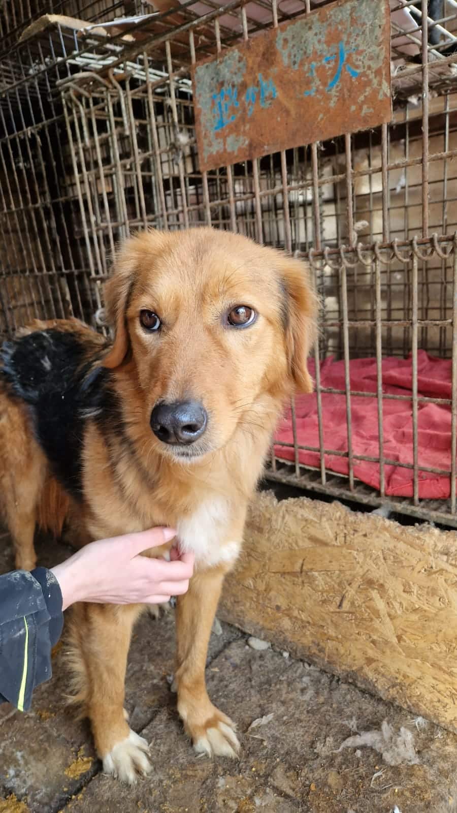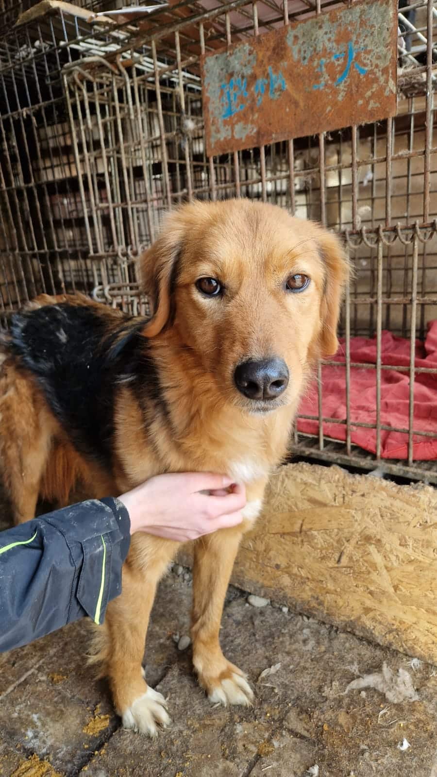 wurde aus einem anderen Kennel geholt und gerade in diesen Kennel gesetzt, als wir dazu kamen – war zu allen Hunden sofort freundlich