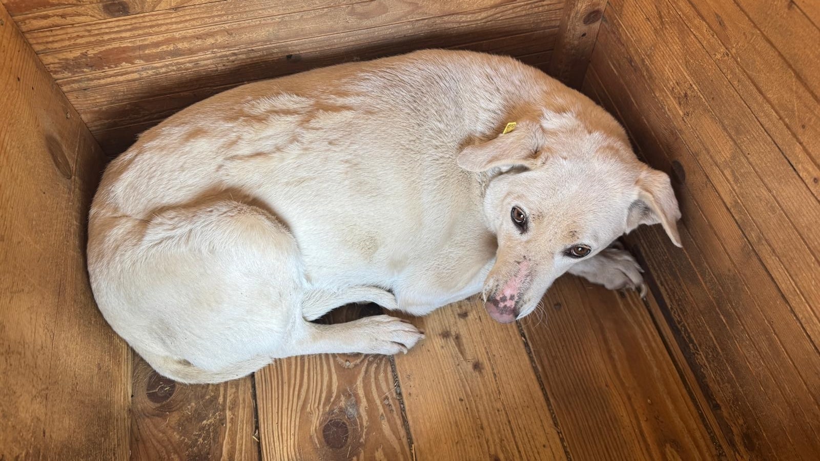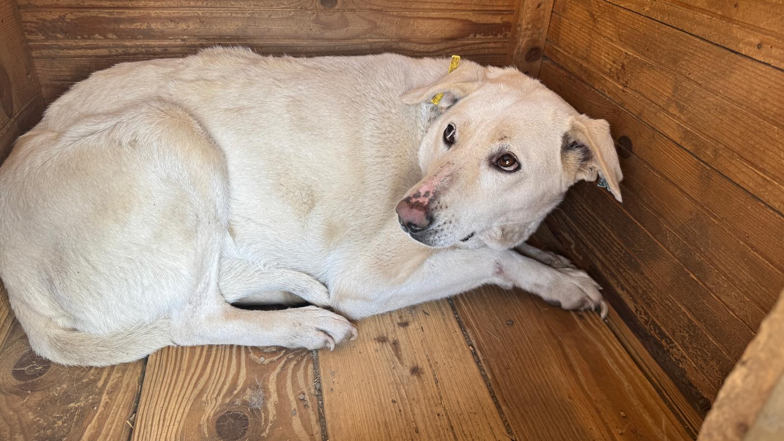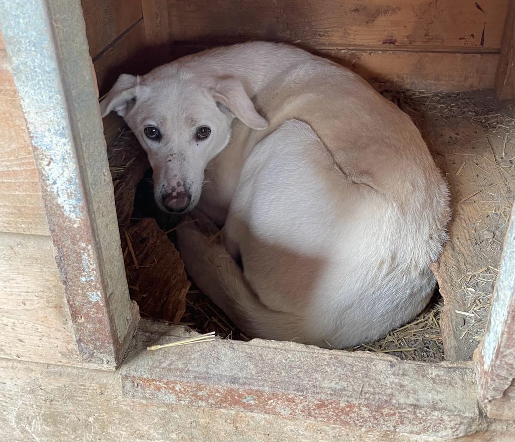 LILLESOL ist weiterhin sehr unsicher. Bei unserem Besuch lag sie in der Hütte, wo wir sie auch streicheln konnten. Sie schnappte dabei halbherzig ab, ließ es aber dann über sich ergehen. Unsere Leckerlies nahm LILLESOL nicht an. Sie braucht erfahrene Menschen, die mit ihrer Unsicherheit umgehen und sie mit Know-How und Geduld an ein Zusammenleben mit dem Menschen gewöhnen können.