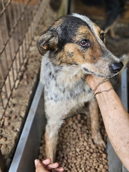 LILLI ist zu einer wunderschönen Junghündin herangewachsen. Gerne nahm sie unsere Leckerchen und wir konnten sie auch streicheln. Man merkt ihr aber an, dass sie Streicheleinheiten noch nicht kennt. Wir hoffen sehr für LILLI, dass sie bald die Chance auf eine Ausreisemöglichkeit bekommt, damit sie positiven Kontakt zum Menschen kennenlernt und nicht unsicher wird.