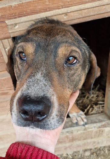 LILUS jaulte schon in seiner Hütte, als wir uns mit anderen Hunden beschäftigt haben. Als wir dann zu ihm gingen, kam der freundliche Kerl ganz vorsichtig heraus und suchte sofort Schutz bei uns. Er hat sich an uns gekuschelt und war einfach nur froh, dass wir da waren. Er ließ sich problemlos überall streicheln.