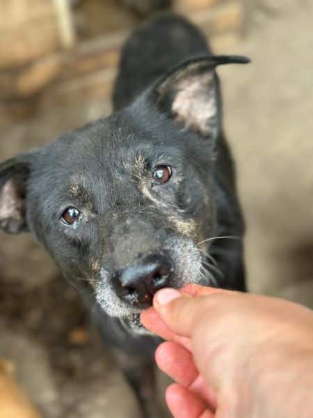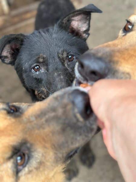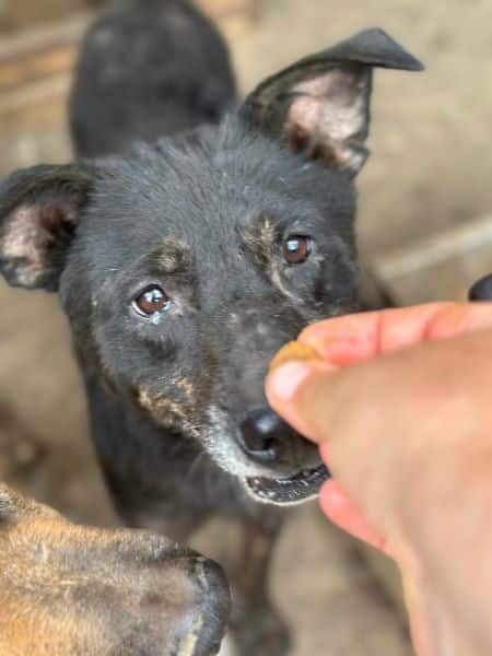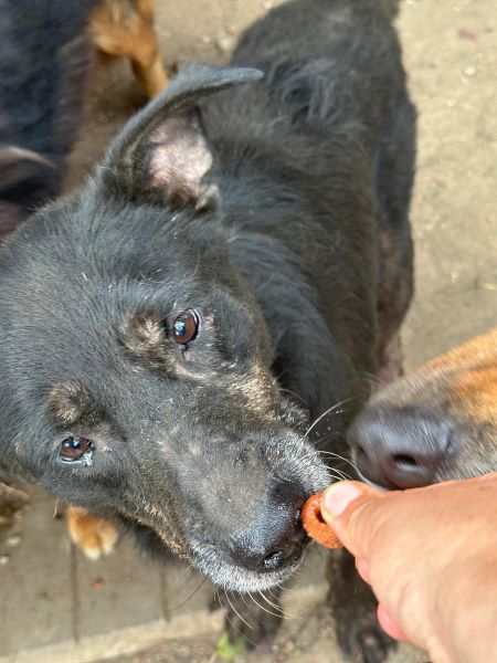 LIMA zeigte sich diesmal wieder offener. Sie lief mit den anderen Hunden durch den Kennel und sammelte Leckerchen auf. Auch aus der Hand hätte sie fast eines genommen, wäre kein anderer Hund dazwischen gegangen. Sie ist zurückhaltend und etwas unsicher, würde sich aber gerne mehr trauen. Bei erfahrenen Menschen mit nettem, souveränem Ersthund würde sie sicherlich gute Fortschritte machen können.