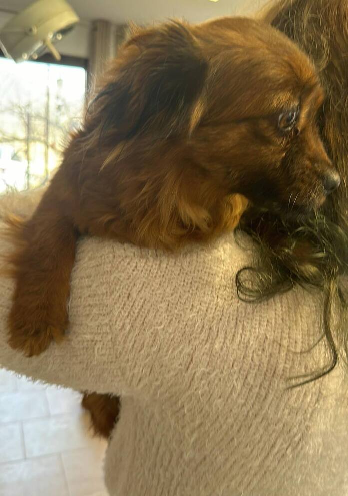 Sie möchte am liebsten auf dem Arm bleiben. Mit anderen Hunden ist sie sehr nett.