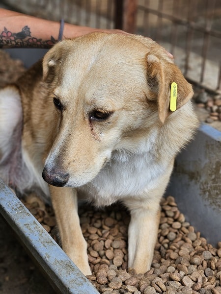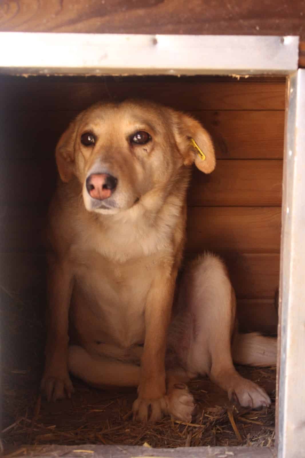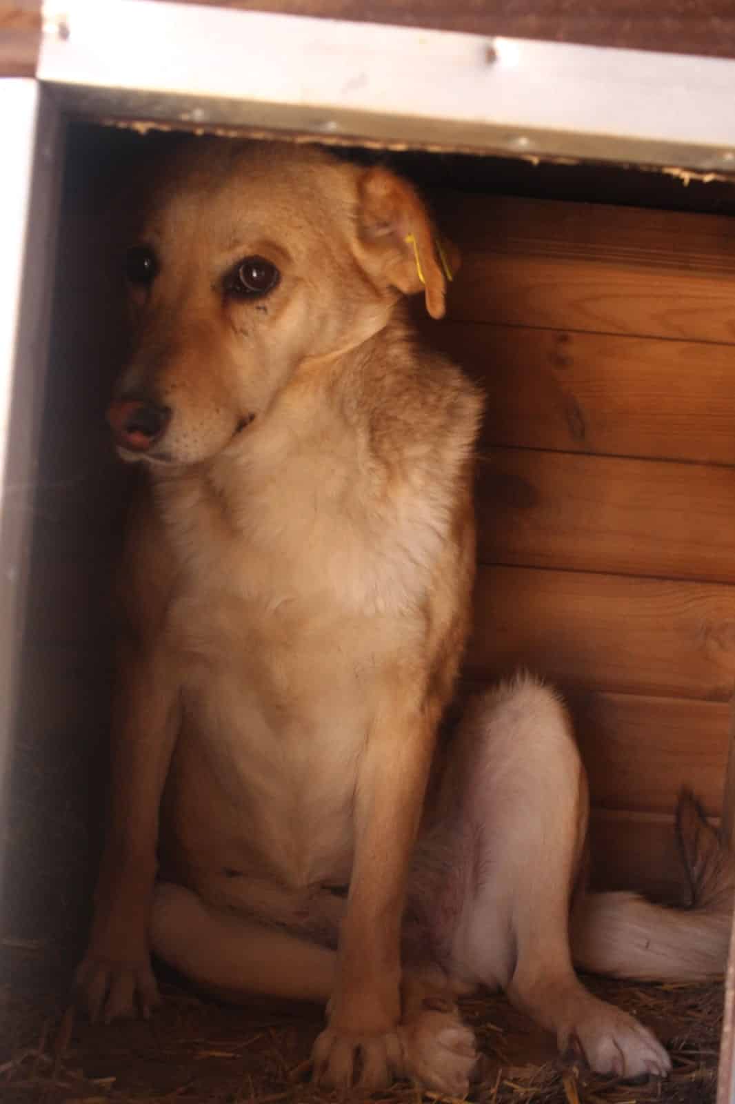 LINETT ist eine liebe, noch etwas unsichere Hündin. Sie kam dicht an uns heran und schnupperte an unseren Leckerlies, traute sich aber noch nicht mehr. In der Hütte zeigte sie sich unterwürfig und ließ sich auch anfassen. Sie zeigte dabei keinerlei Abwehrverhalten. Eine liebe Hündin, die in einer anderen Umgebung sicherlich bald mehr auftauen würde.