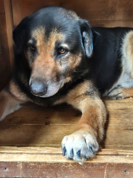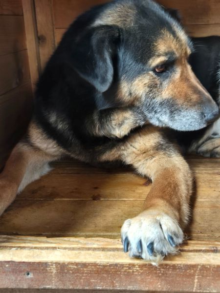 Linox verhält sich ruhig und sucht unsere Nähe. Leckerli wollte er gern aus der Hand nehmen aber hat sich noch nicht ganz getraut. Er sieht fertig und erschöpft aus, hat abgebaut und Hautprobleme.