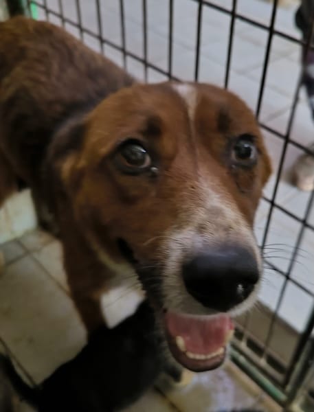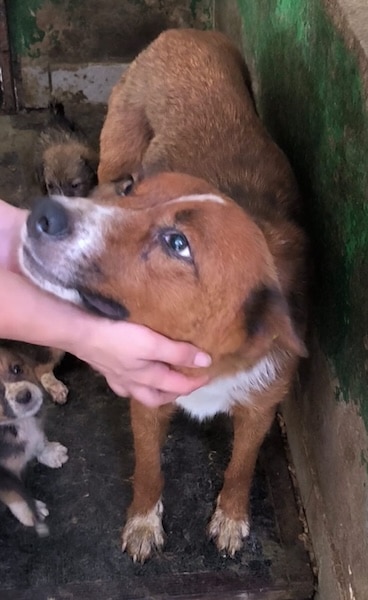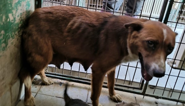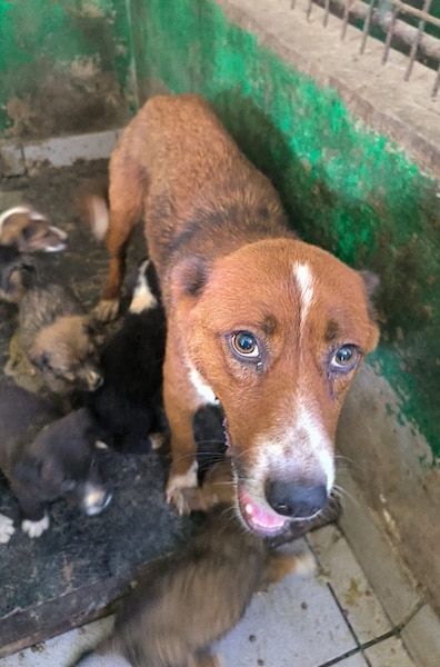 LISABETH lebt zusammen mit ihren Welpen im Vetkennel. Als wir den engen Kennel betraten, verhielt sie sich uns gegenüber freundlich.