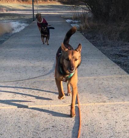 Sie lernt sehr schnell und läuft schon super an der Leine mit, auch der Abruf an der Schleppleine funktioniert bereits super.