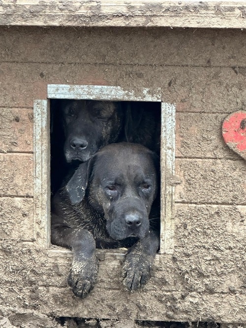 LISSY und LOU haben sich aufgegeben. Sie hielten sich ausschließlich in der Hütte auf. Keine Regung als wir den Kennel betraten, noch nahmen sie unsere Leckerlis.