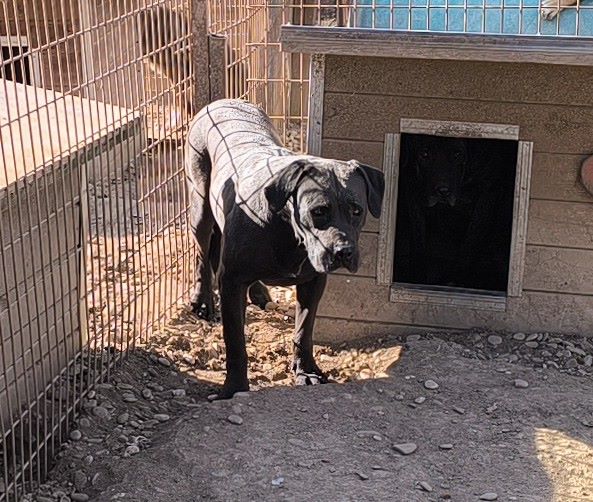 Lissy & Lou beobachteten uns neugierig aus ihrer Hütte. Als wir das Hüttendach öffneten, verhielten sie sich ruhig und freundlich im Kennel. An unseren Leckerlies hatten die beiden zwar gerochen, sie waren jedoch uninteressant für sie. In ihrerHütte ließen sie sich sehr gut streicheln. Die beiden verstehen sich super und wirken so liebevoll zueinander. Sie ließen sich von den lauten, dynamischen Nachbarkenneln nicht aus der Ruhe bringen. Die beiden wirken so, als würden sie von ihrem Leben nichts Positives mehr erwarten.