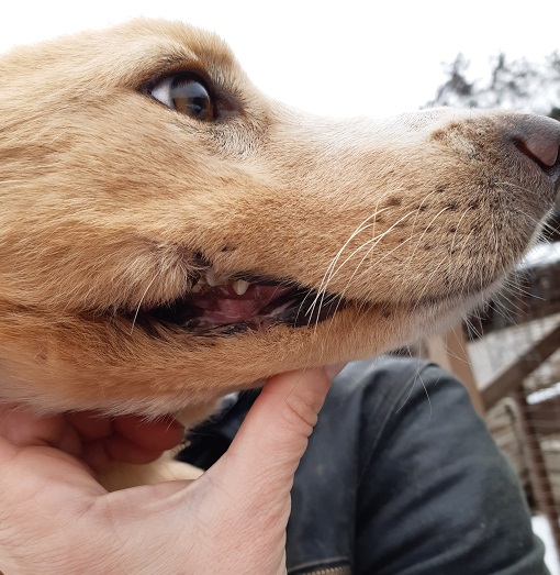 Hündin, kastriert geb. ca. Ende 2019 verletzte/eingerissene Lefzen durch Drahtschlinge der Hundefänger
