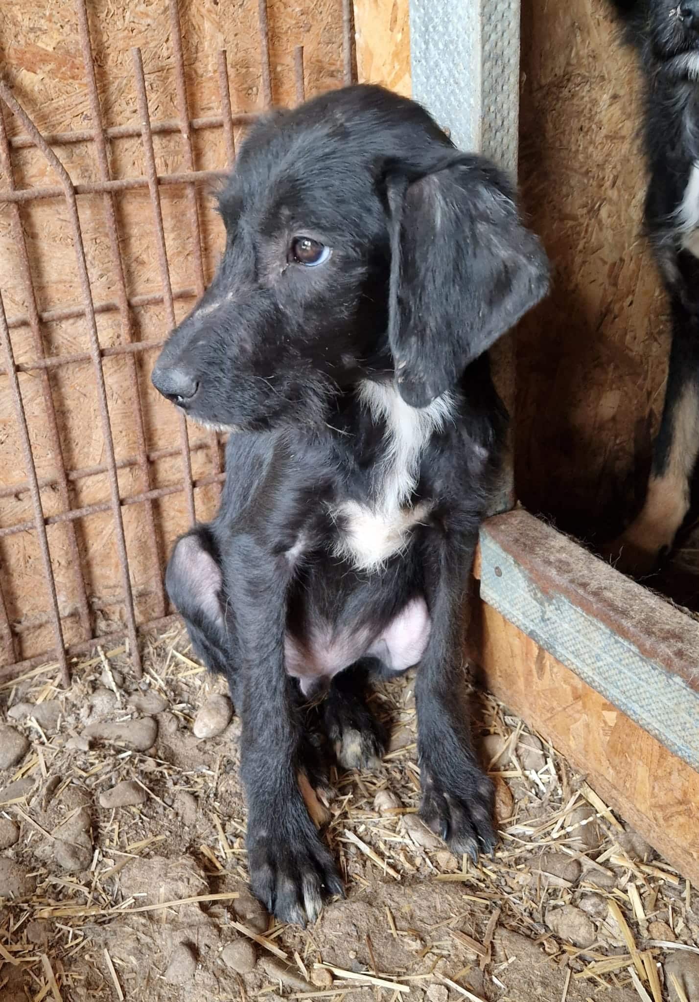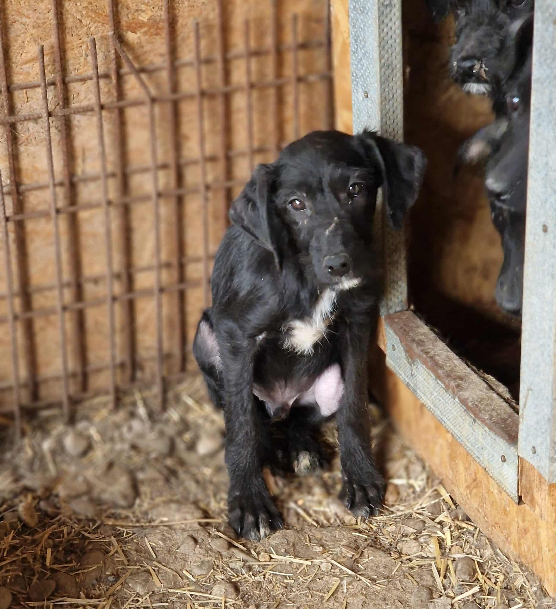 Dieser kleine süsse Welpenjunge saß monatelang im Vetkennel und durfte nun endlich in einen freigemachten Außenkennel ziehen. Seine Geschwister sind leider alle schon sehr unsicher und LITTLE JOE hat niemanden, bei dem er sich etwas Positives in Bezug auf Menschenkontakt abschauen kann. Trotzdem saß als einziger draußen vor der Hütte, als wir im Kennel waren, nahm sofort gerne unsere Leckerlies aus der Hand und ließ sich streicheln, auch wenn ihm das unbekannt ist. Ein netter, kleiner hilfloser Junge, der dringend Hilfe braucht. Er ist völlig abgemagert und neben seiner Schwester CATIE, die ebenso eine Kopfschiefstellung hat und viel zu dünn ist, der Kleinste seiner Geschwister.