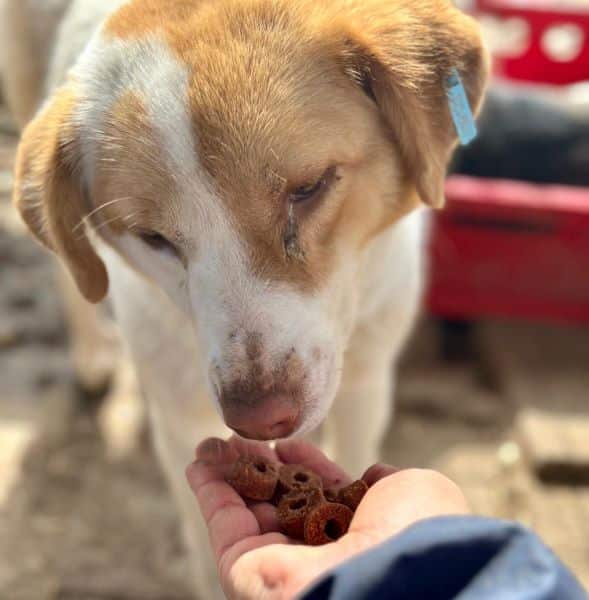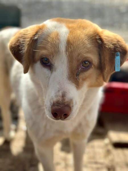 Diese junge, sehr verträgliche Hündin war von Anfang an neugierig und interessiert. Sie nahm schnell Leckerchen aus den Fingern. Zu mehr fehlte leider der Mut. Wer sich mit noch unsicheren Auslandshunden auskennt, wird sie in wenigen Wochen zutraulicher bekommen. Idealerweise im Zusammenspiel mit einem souveränen Zweithund.