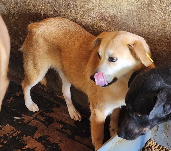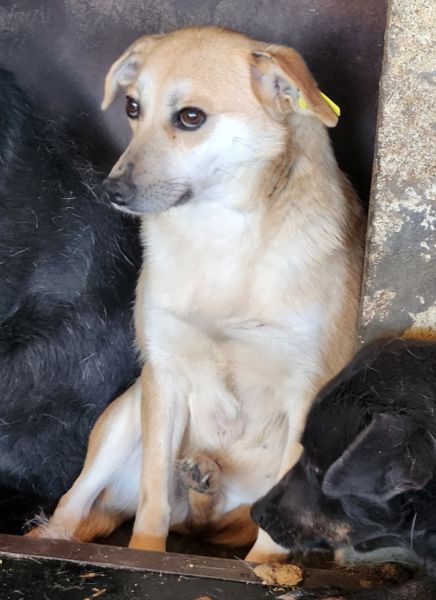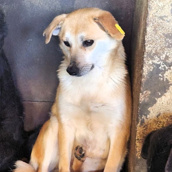 Die zierliche, kleine Hündin saß in der hintersten Ecke des Kennels als wir diesen betraten. Sie machte einen skeptischen, unsicheren Eindruck auf uns, nahm aber nach einer Weile die angebotenen Leckerchen vom Boden auf. Sie blieb dabei zurückhaltend und getraute sich nicht näherzukommen, sodass sie stets auf Abstand blieb. Eine ruhige Hündin, die zu keiner Zeit panisch wirkte, uns aber etwas verloren in der dunklen Enge des Vetkennels erschien. Ein trauriger Anblick, wir hoffen, dass sie diesen trostlosen Ort schon bald wieder verlassen wird können.