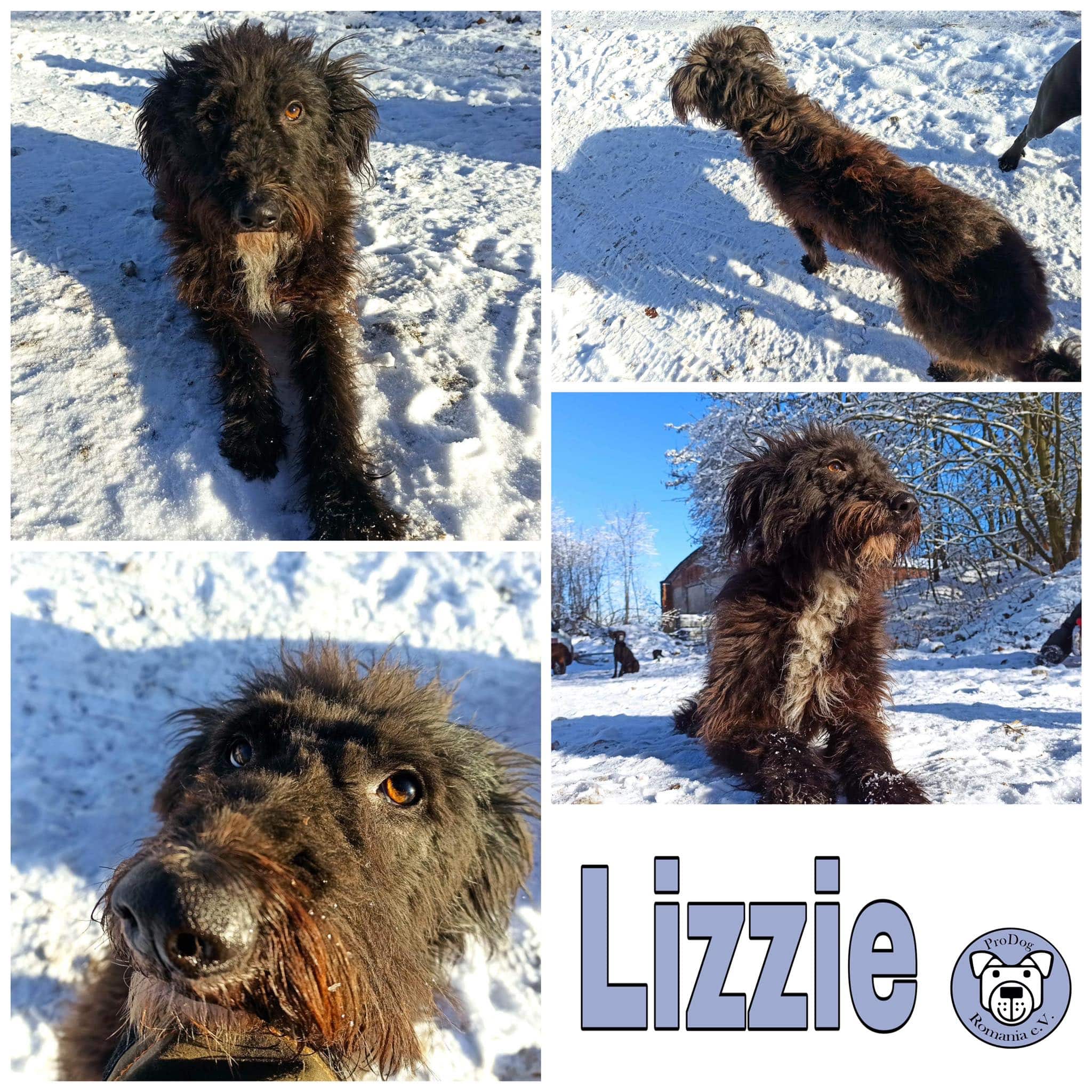 Lizzie ist eine ausgesprochen fröhliche Hündin, die es liebt durch die Welt zu springen. Auf ihrer Pflegestelle lebt sie in einem gemischten Rudel und zeigt sich sehr verträglich mit großen und kleinen Hunden, Rüden und Hündinnen. Auch andere Tiere, wie Pferde, Schafe, Ziegen und Kühe sind für Lizzie kein Problem.