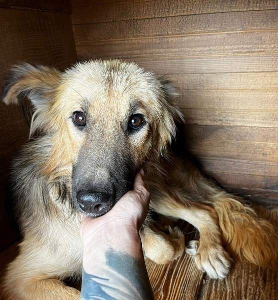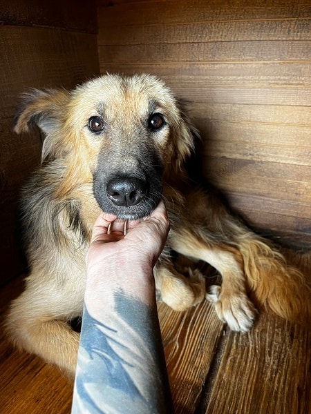 LOBA wird wahrscheinlich gemobbt. Sie hat einen sehr schweren Stand in ihrem hektischen Kennel und wirkt richtig gestresst. Sie zeigt sich sehr demütig gegenüber uns Menschen und auch gegenüber den anderen Hunden. Zunächst lief sie dann vor uns weg, ließ sich in der Hütte aber gut streicheln.