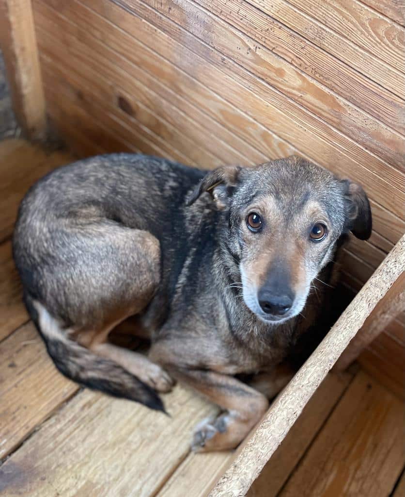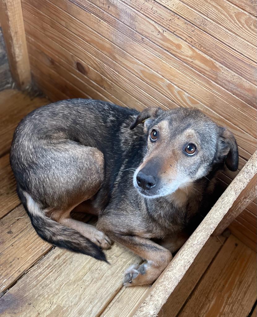 LOBO – was für ein süßes Kerlchen. Nach kurzem halbherzigem Abwehrschnappen konnten wir ihn gut in der Hütte streicheln. In einer anderen Umgebung bei erfahrenen Menschen würde er sicher schnell etwas zutraulich werden. Wir wünschen ihm sehr, dass er seine Menschen bald findet. Aufgrund seines Alters wird es sicher schwer für ihn.