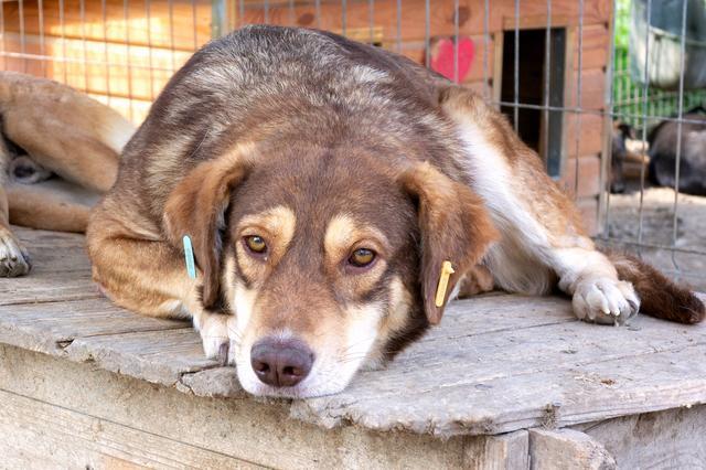 Meistens lag LONELY auf seiner Hütte und starrte ohne Erwartung in die Ferne. Die vielen, bellenden Hunden im Heim schien er gar nicht mehr wahrzunehmen. Auch zeigte er bereits beginnende Hautprobleme.