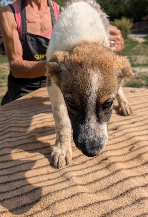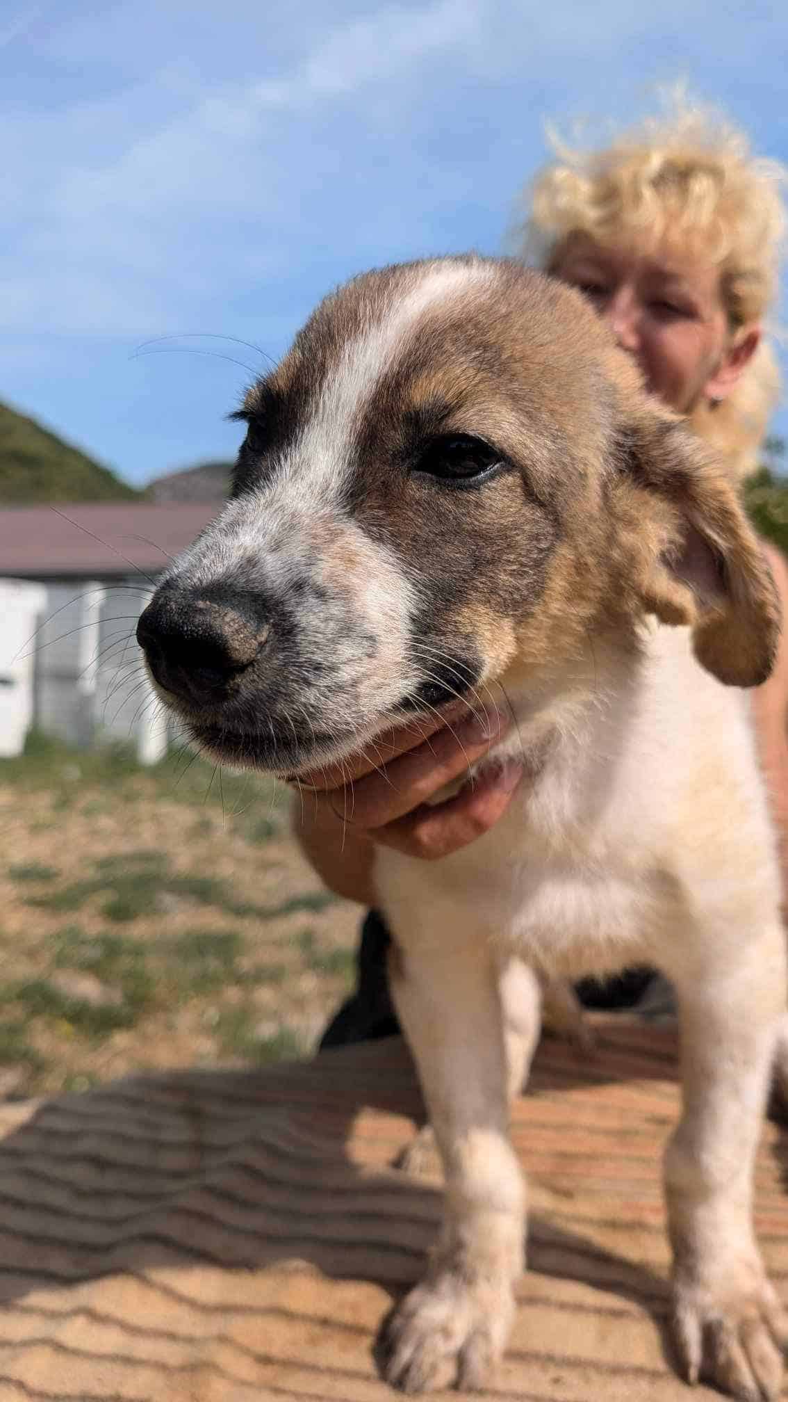 Der fröhliche, zarte LORCAN ist verspielt, überall anfassbar und freundlich. Wie jeder Welpe, schaut er erwartungsvoll in die Welt, möchte Abenteuer erleben und mit seinen Hundekumpels toben.