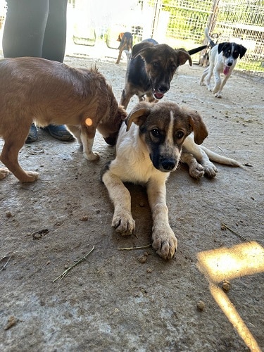 Update 08/24: Lorcan ist ein süßer, netter, junger Hundemann. Er liess sich auf der Decke für das Fotoshooting gut anfassen und hat alles gut mitgemacht, was für seinen Charakter spricht. Zunächst brauchte er etwas Zeit, weil er nicht wusste, was hier passiert aber er liess alles gut mit sich machen. Wir denken, Lorcan ist sensibler als die anderen und sollte daher zeitnah reisen. Lorcan ist sehr verträglich in der Gruppe, weiterhin offen und interessiert und zutraulich. Wir hoffen sehr, dass er bald anders aufwachsen kann als in einem trostlosen Kennel.