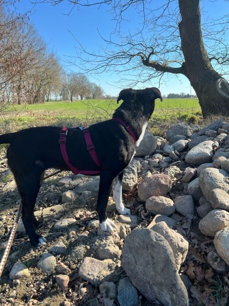 Lorelai ist eine wundervolle aktiv und sehr menschenbezogene Hündin. Sie freut sich über alles und jeden. Sie möchte einen mit Liebe überschütten und sucht viel Nähe und hört wunderbar und möchte gefallen. Sie ist hier verträglich und verspielt mit den anderen Hunden; zieht den Menschen jedoch immer vor. Für Lorelai suchen wir aktive und hundeerfahrene Menschen, die sie liebevoll aber konsequent führen. Da sie oft überschwänglich reagiert, braucht sie Hilfe dann ruhiger zu werden. Sie lässt sich dann aber perfekt korrigieren. Lorelai geht ganz toll an der Leine und hat viel Freude auf ihren Gassirunden.