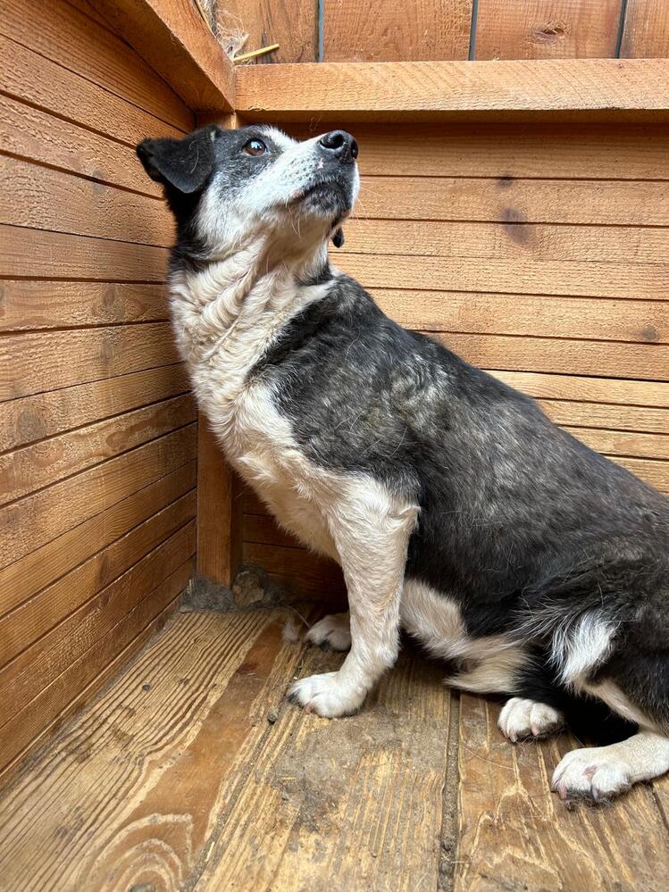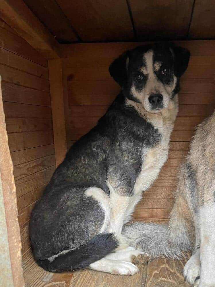 LORIE war an uns interessiert. Neugierig war sie immer in der Nähe, solange wir uns mit den anderen Hunden im Kennel beschäftigten. Als wir uns ihr zuwandten, verschwand sie doch lieber in der Hütte. Hier nahm LORIE gern Leckerlis vom Boden. Wir konnten sie in der Hütte auch streicheln, dabei zitterte sie aber am ganzen Körper.