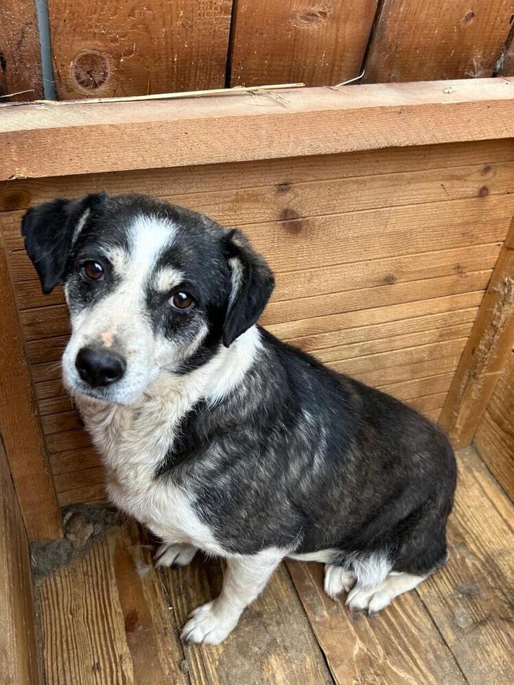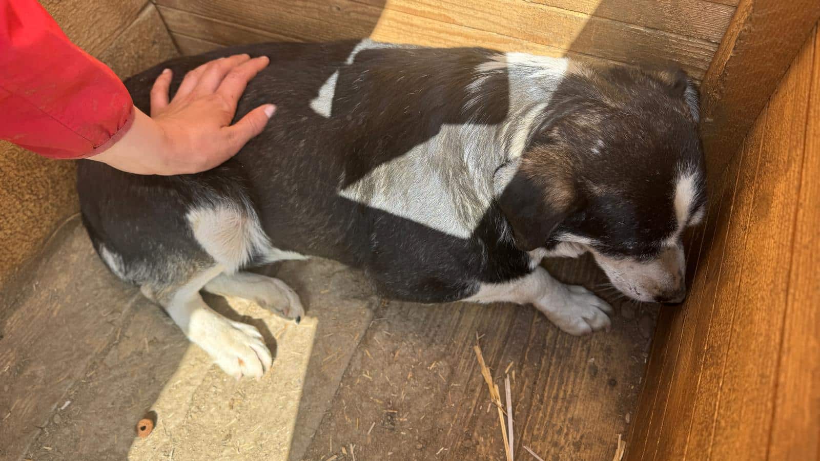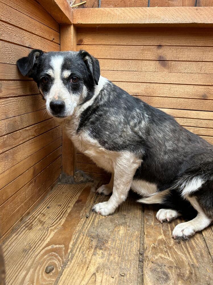 LORIE ist weiterhin sehr unsicher und flüchtete vor uns. Als wir ihr in der Hütte den Fluchtweg versperrten, konnten wir sie dort gut anfassen und streicheln. LORIE fühlt sich dabei unwohl und versteift, zeigt aber kein Abwehrverhalten. In ihrem Kennel sitzen leider auch nur unsichere Hunde, so dass LORIE in Bezug auf den Umgang mit dem Menschen keinerlei positive Vorbilder hat.