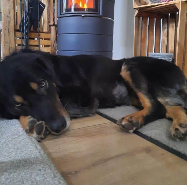 Im Haus ist Lorina absolut tiefenentspannt und kann gut und gerne eine angemessene Zeit (mit oder ohne weiteren Hund) alleine bleiben.