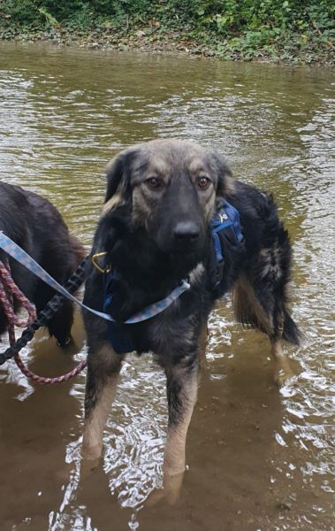 Sie bindet sich schnell und intensiv an ihr zugetane Menschen und ist eine sehr angenehme Zeitgenossin. Sie wedelt freudig, wenn man ihr am Morgen das erste Mal begegnet oder wenn man nach Hause kommt. Sie geht gerne Gassi, auch längere Runden bereiten ihr große Freude. Dabei läuft sie schon gut an der Leine und ist draußen sehr entspannt und wenig schreckhaft. Wenn Sie das Klappern der Hundeleine hört kommt sie schon zur Tür und lässt sich ganz brav das Geschirr anziehen.