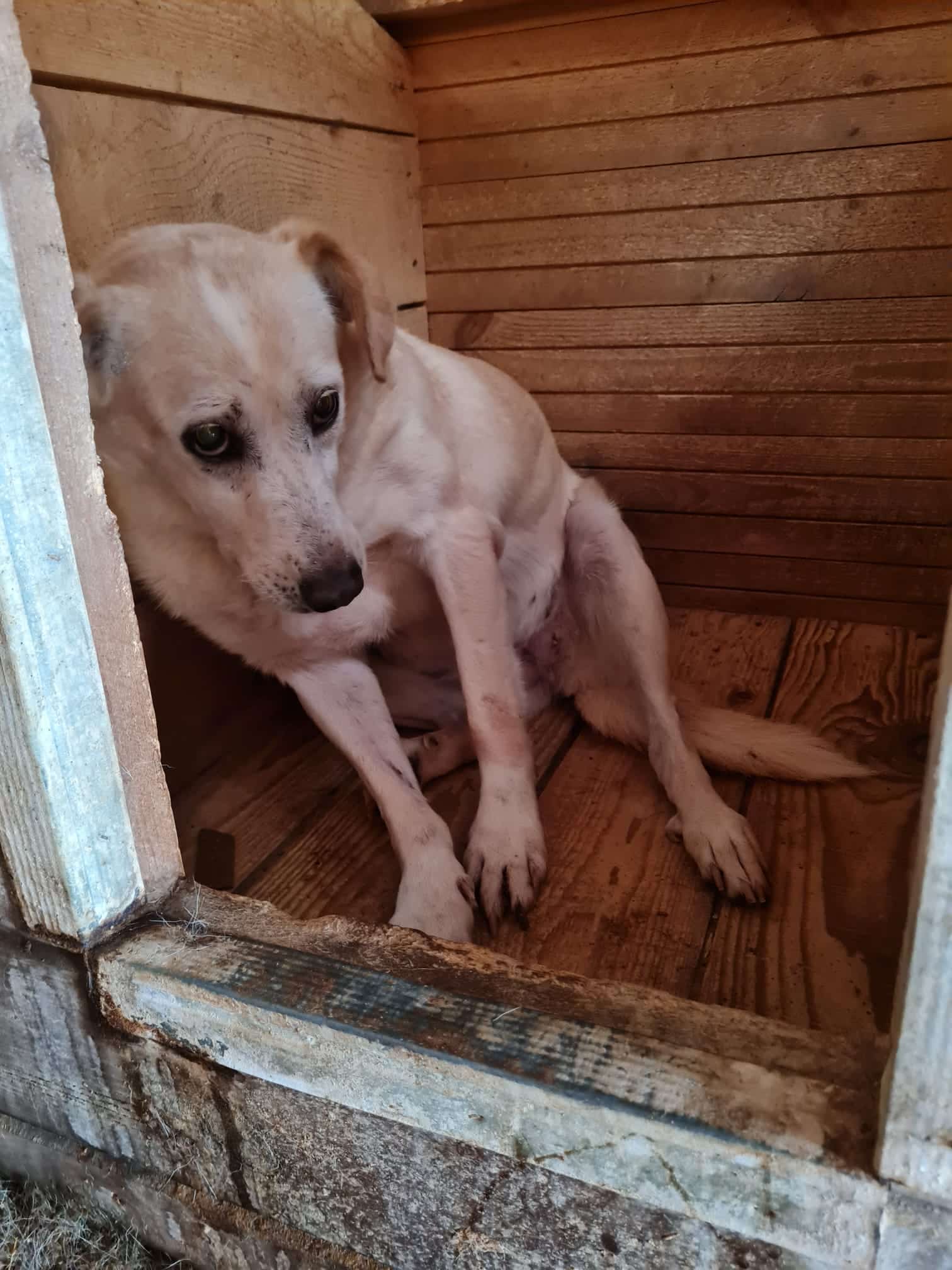Update Februar/März 24: Unsere Tierärztin funkt SOS für Omi Lotte. Sie ist vollkommen resigniert, liegt nur noch in der Hütte. Es scheint als habe sie aufgegeben. Selbst fressen kann sie nicht mehr richtig. Andreea fütterte sie mit Nassfutter in der Hütte. Lottes Kraft scheint kaum noch zu reichen, der Lebenswille nur noch ein kleiner Funken. Der letzte Winter, die lange Zeit im Shelter waren zu viel. Lotte lässt sich anfassen und sogar ins Maul für den Zahnstatus, greifen. Sie wird Eingewöhnungszeit brauchen, ein ruhiger Zweithund könnte ihr die Eingewöhnung erleichtern. Aber Lotte möchte Sicherheit, Ruhe, Verständnis und braucht vor allem die Möglichkeit in Ruhe zu fressen und das passende Futter, denn sie hat kaum noch Zähne. Wahrscheinlich ist sie älter als angenommen. Wir brauchen zeitnah einen Platz für Lotte, es eilt.