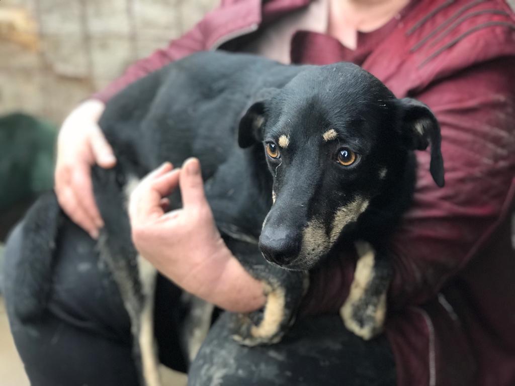 LOTTIE kam nicht von sich aus zu uns, aber wir konnten sie gut hoch nehmen. Aktuell sind ihr Berührungen noch so fremd, dass sie sich nicht traut, sich zu bewegen. Bei den richtigen Menschen würde das Eis schnell brechen.