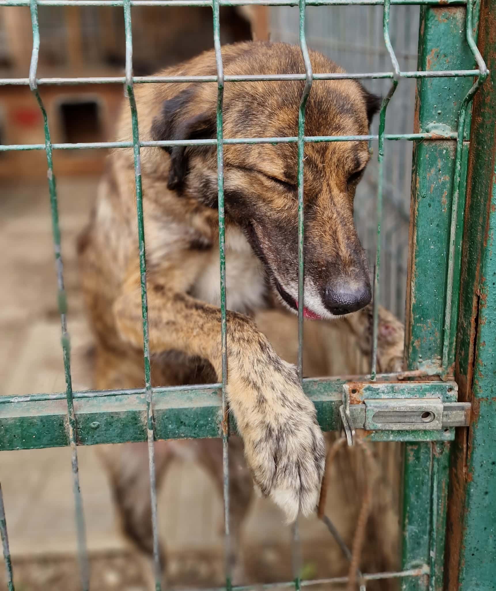 LOUMES steht verzweifelt am Kennelgitter und sehnt sich so sehr danach, endlich aus seinem Kennel zu dürfen. Er hat unsere Streicheleinheiten sehr genossen und war traurig, dass wir nur so kurz Zeit für ihn hatten.