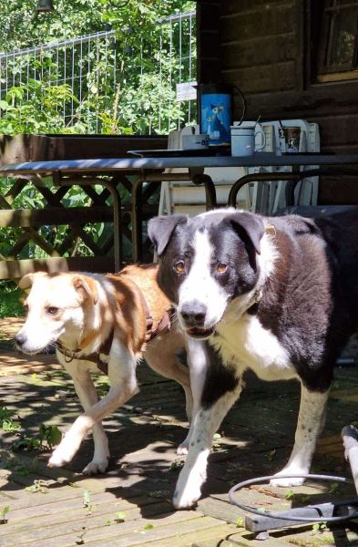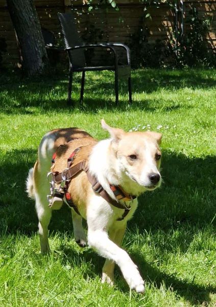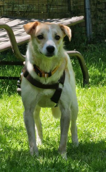 Somit musste sie erstmal ins Séparée umziehen bis sie endlich ihr Geschirr, ein Halsband und eine kurze Hausleine dran hatte. Danach begann die Gewöhnung an die Leine, bzw. das laufen an der Leine. Im Laufe des Frühjahrs durfte sie dann auch in den sicheren Garten und sich dort mit Schleppleine vergnügen und austoben. Nach und nach akzeptierte sie auch immer besser meinen zweiten Rüden und auch andere Hunde, die bei mir stetig kommen und gehen. Sie hat mittlerweile einige andere Pflegehunde und auch Besuchshunde kennen gelernt und das klappt reibungslos.