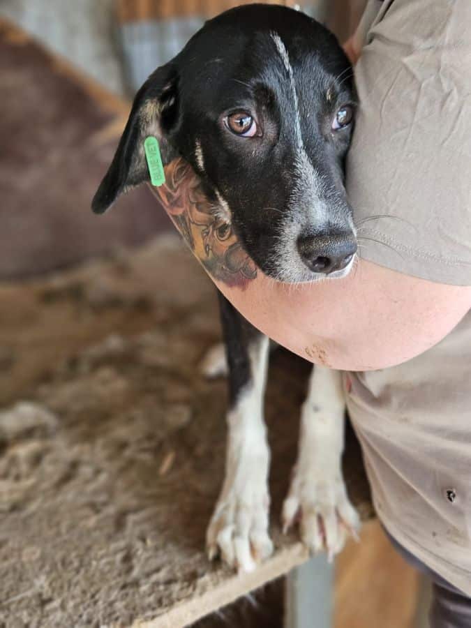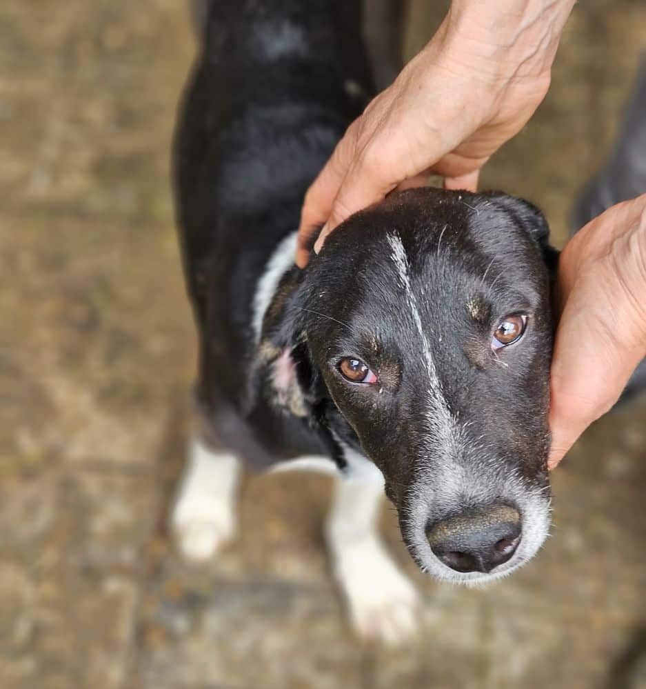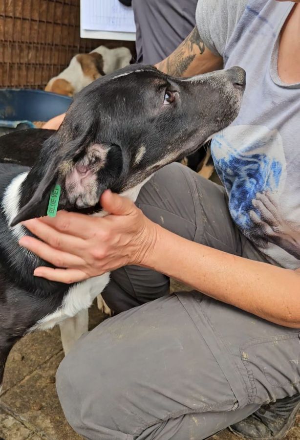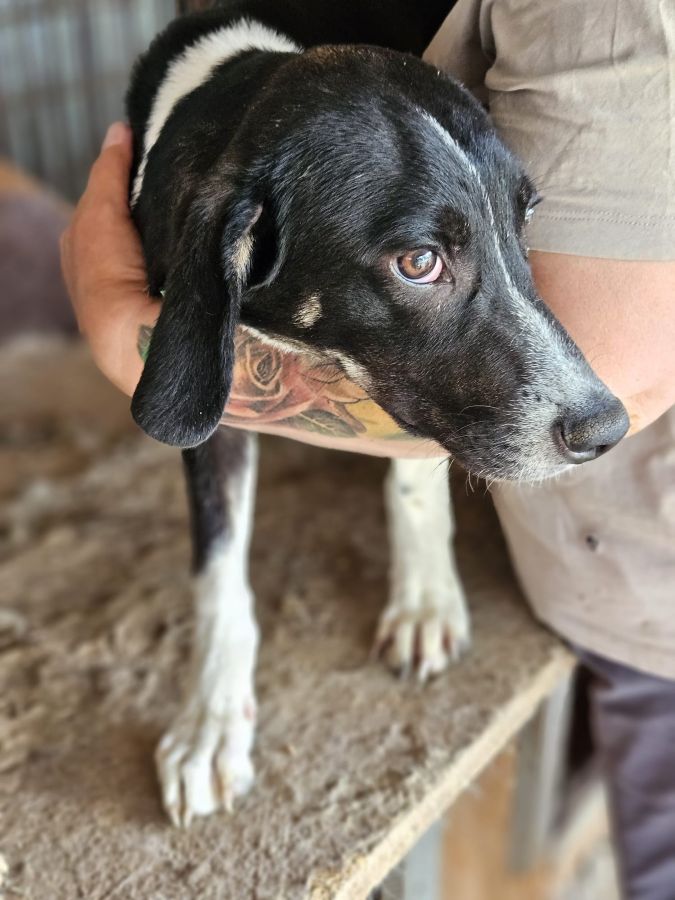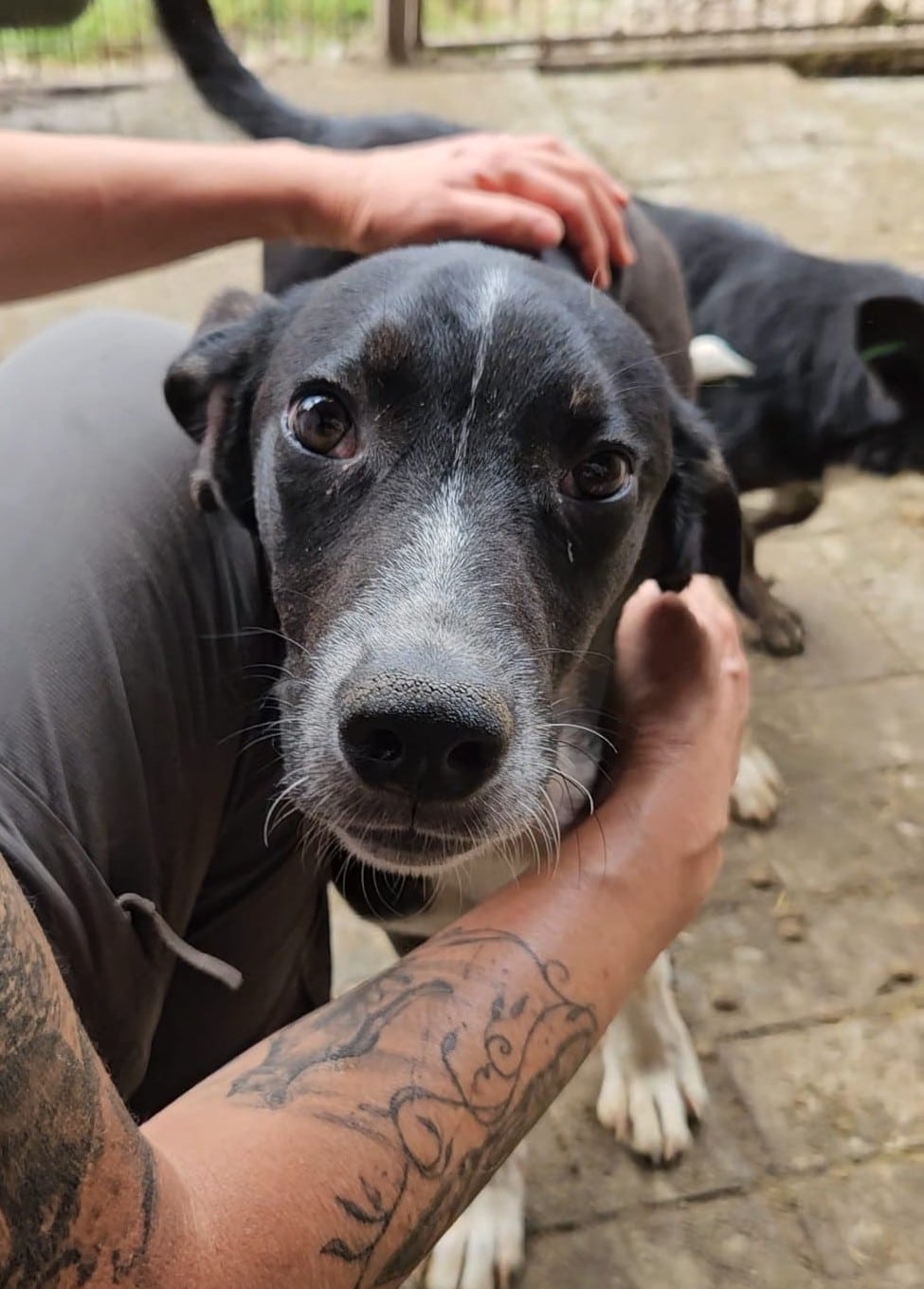 Der liebe LUAN hat es in seinem Kennel nicht leicht und hat einen niedrigen Stand. Er ist junghundtypisch verspielt, gab uns liebevoll Küsschen, genoss unsere Streicheleinheiten, ist zutraulich und komplett nett. Als wir ihn dann auf dem Arm nahmen, sprang ein anderer Hund an ihm hoch, biss ihm in den Hintern und ließ nicht mehr los. Wir beendeten die Beißattacke und LUAN flüchtete sich in die Hütte. Der arme Tropf war total eingeschüchtert und wollte die Hütte danach auch nicht mehr verlassen. LUAN ist ein lieber, eher sanfter Rüde. Er würde seiner Familie sicher viel Freude bereiten, wenn er nur die Chance auf eine Ausreisemöglichkeit bekäme. Hoffentlich wird er bald gesehen. Mit den anderen Hunden war er verträglich.