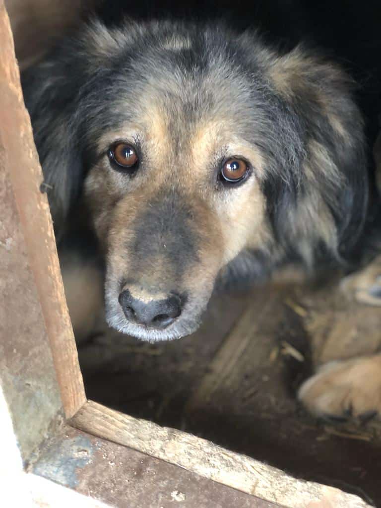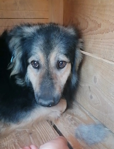 Da Lucas einer Erfasserin besonders am Herzen lag, besuchten wir ihn in unserer Woche in Bucov nicht nur einmal in seinem Kennel. Lucas fanden wir dabei meistens in der Hütte vor. Er scheint vom Leben nichts mehr zu erwarten. Aber als wir ihm in seiner Hütte Leckerli anboten, nahm er sie nach einer Weile vorsichtig aus der Hand. Wir konnten ihn in der Hütte auch problemlos anfassen.
