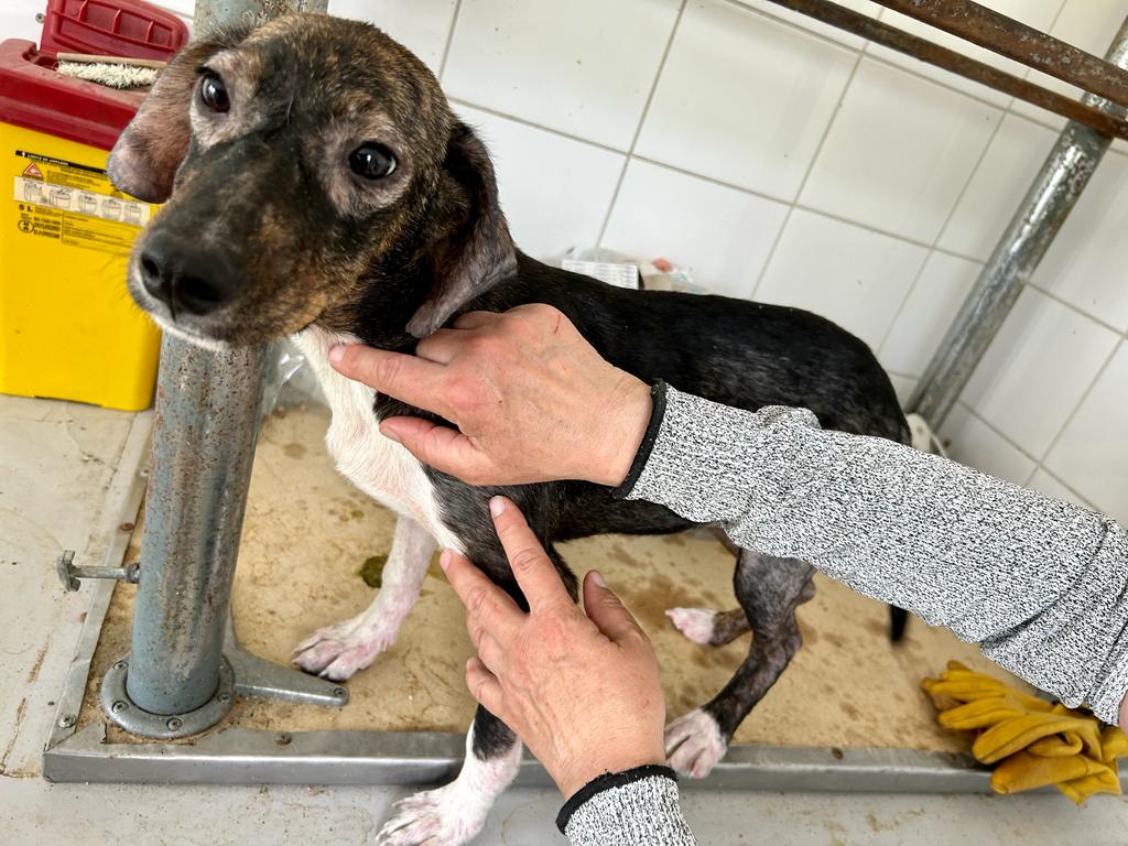 LUCCA hat weiterhin starke Hautprobleme, er ist freundlich und aufgeschlossen, lässt sich problemlos streicheln. Junghundtypisch ist er völlig unausgelastet, Monate wartet er nun schon im Shelter.