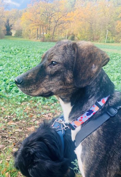 Lucca (wir rufen ihn Lui!) ist ein sehr lieber, aufgeschlossener und freundlicher junger Hundemann. Er lebt mit unserer 4-jährigen Hündin und drei Kindern unter 12 Jahren friedlich und teils lebhaft zusammen und sucht nun sein Für-immer-Zuhause! Lucca ist selbst Fremden (auch Männern) gegenüber stets offen und interessiert, er guckt erst, dann kommt er und lässt sich auch streicheln. Aktuell orientiert er sich noch sehr an unserer Hündin, aber er ist ein extrem schlaues Kerlchen, der sicher auch alleine in einer Familie leben kann – wenn man sich auch etwas mit ihm beschäftigt.