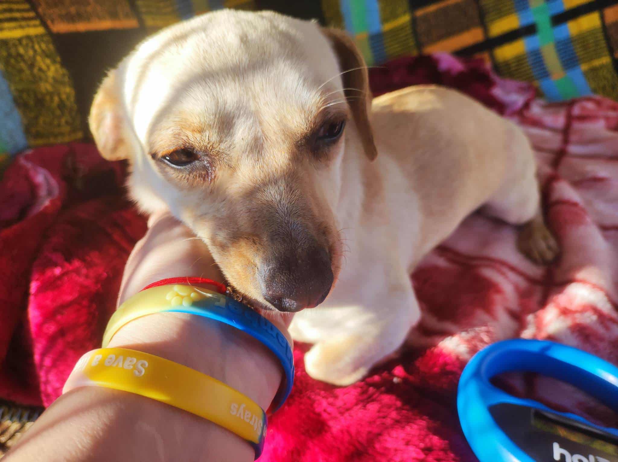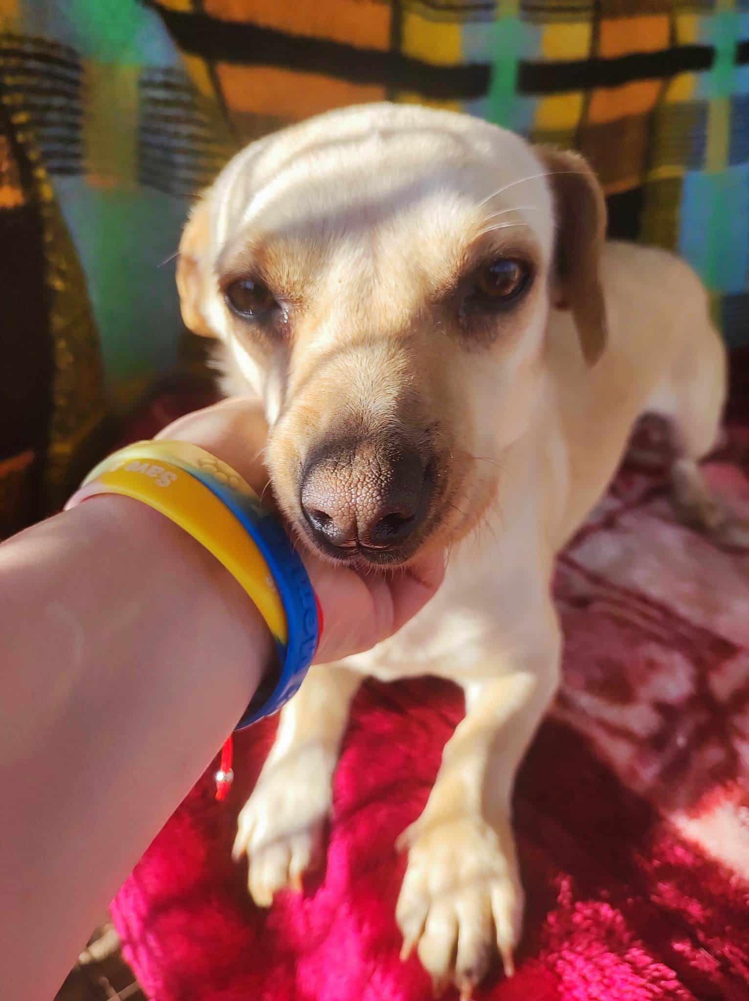 Diese kleine Hundedame wurde von einem Arbeiter mitten auf einem Feld gefunden, als er auf dem Weg zum Shelter war. Sie ist mit ihren nur ca. 7-8kg ein echtes Fliegengewicht und sehr sanft.