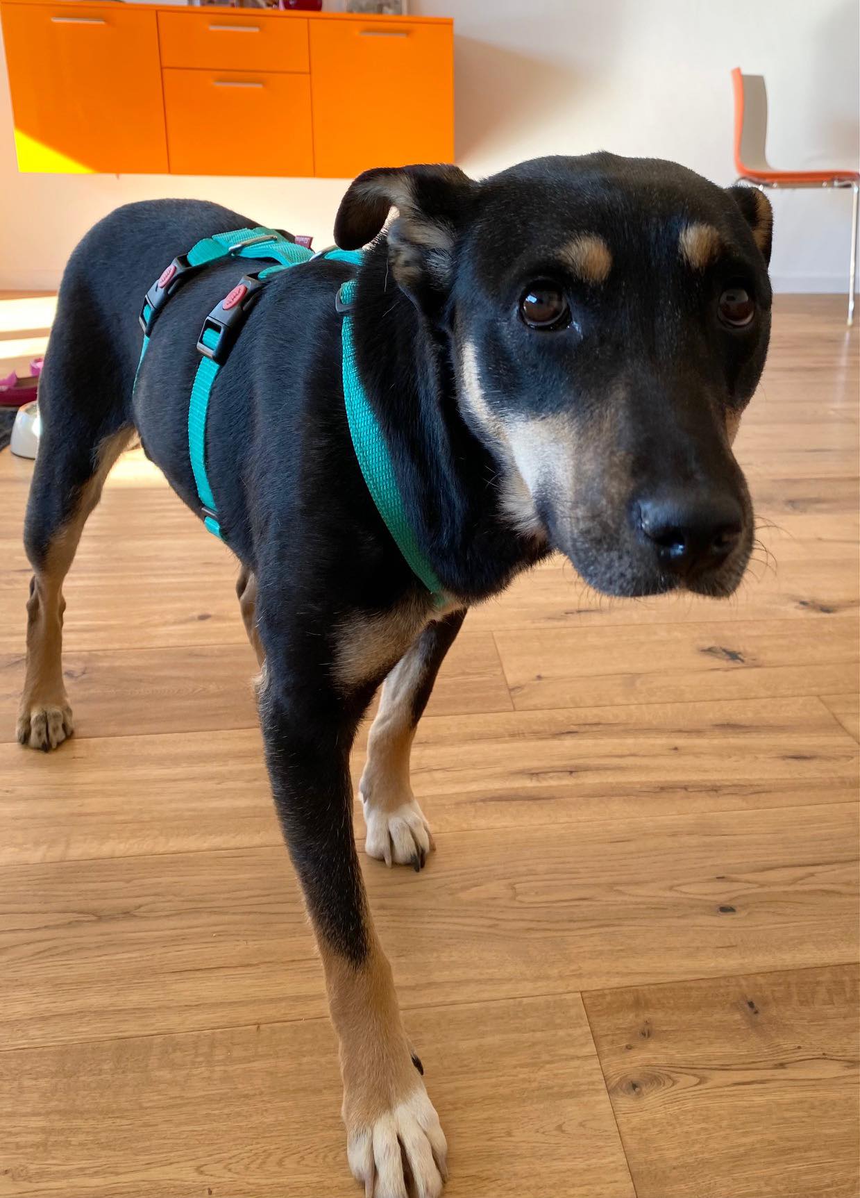 Sie ist stubenrein, kann gut Auto fahren und läuft gut an der Leine. Außerdem kann sie problemlos ein paar Stunden alleine bleiben.