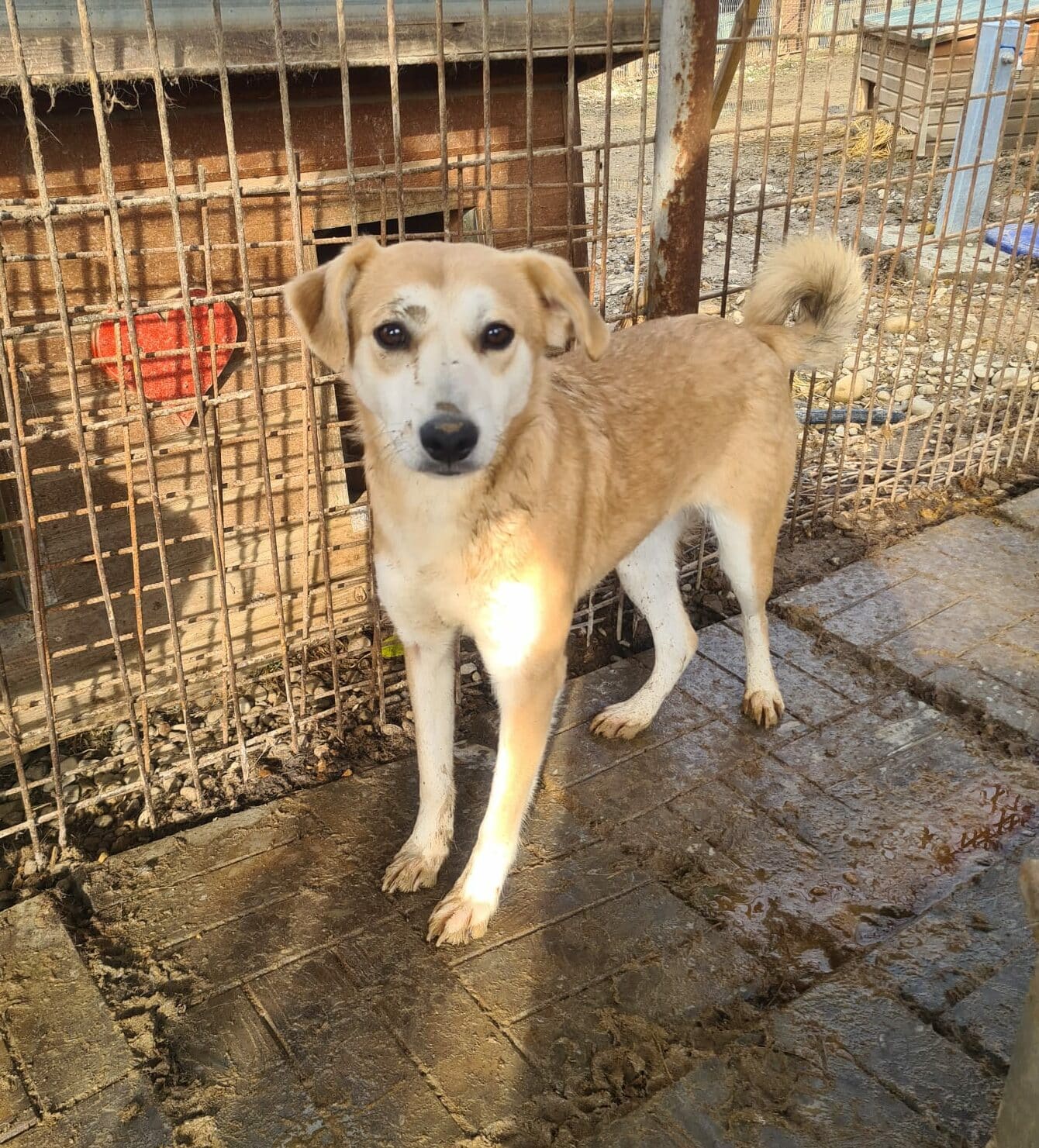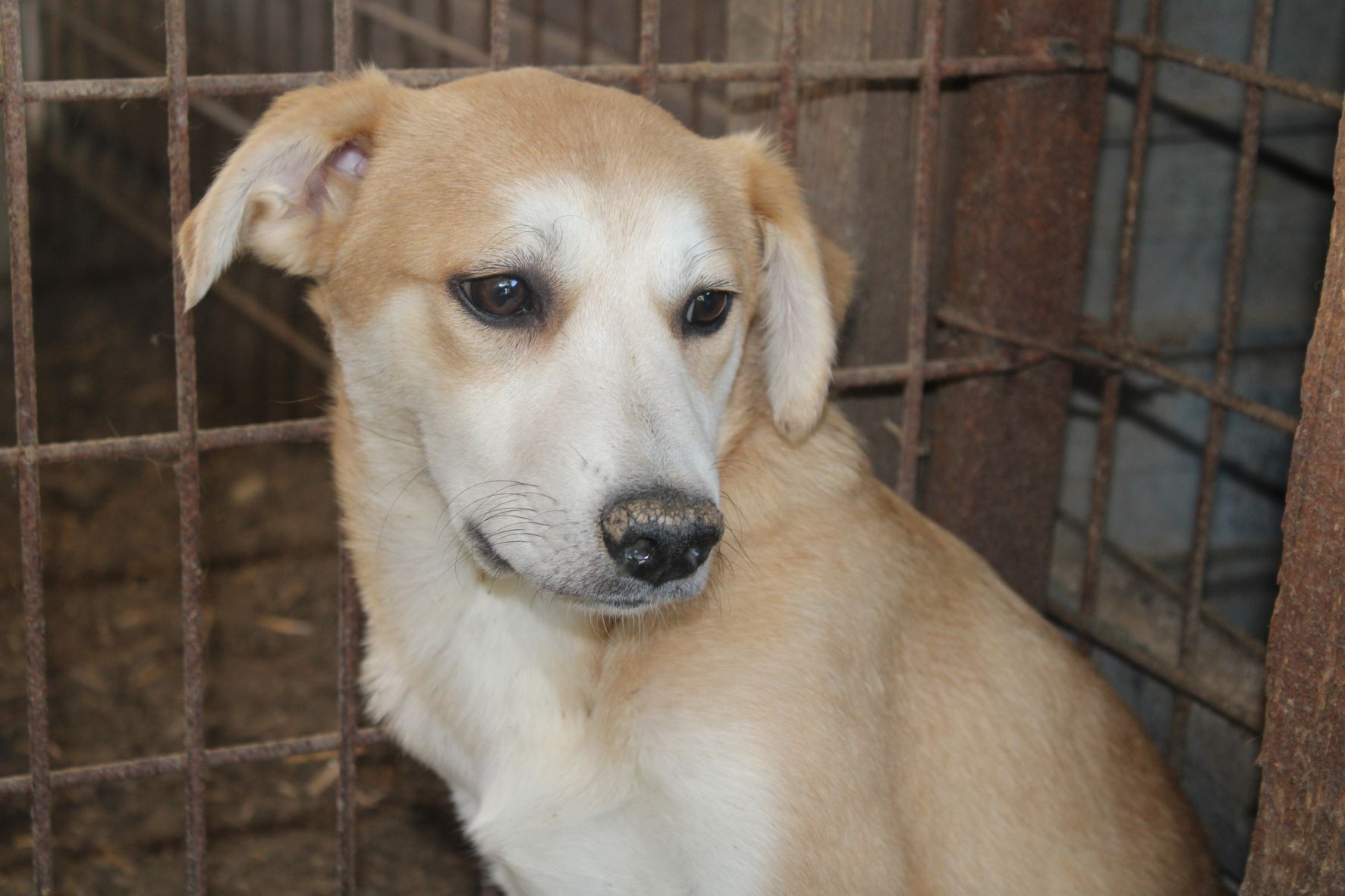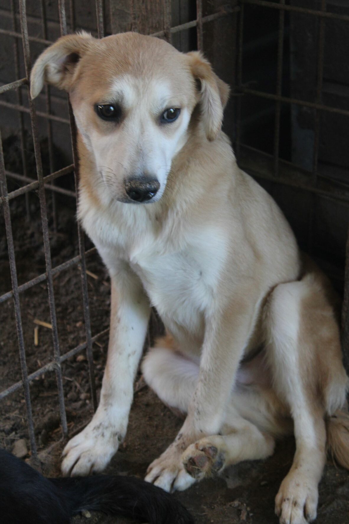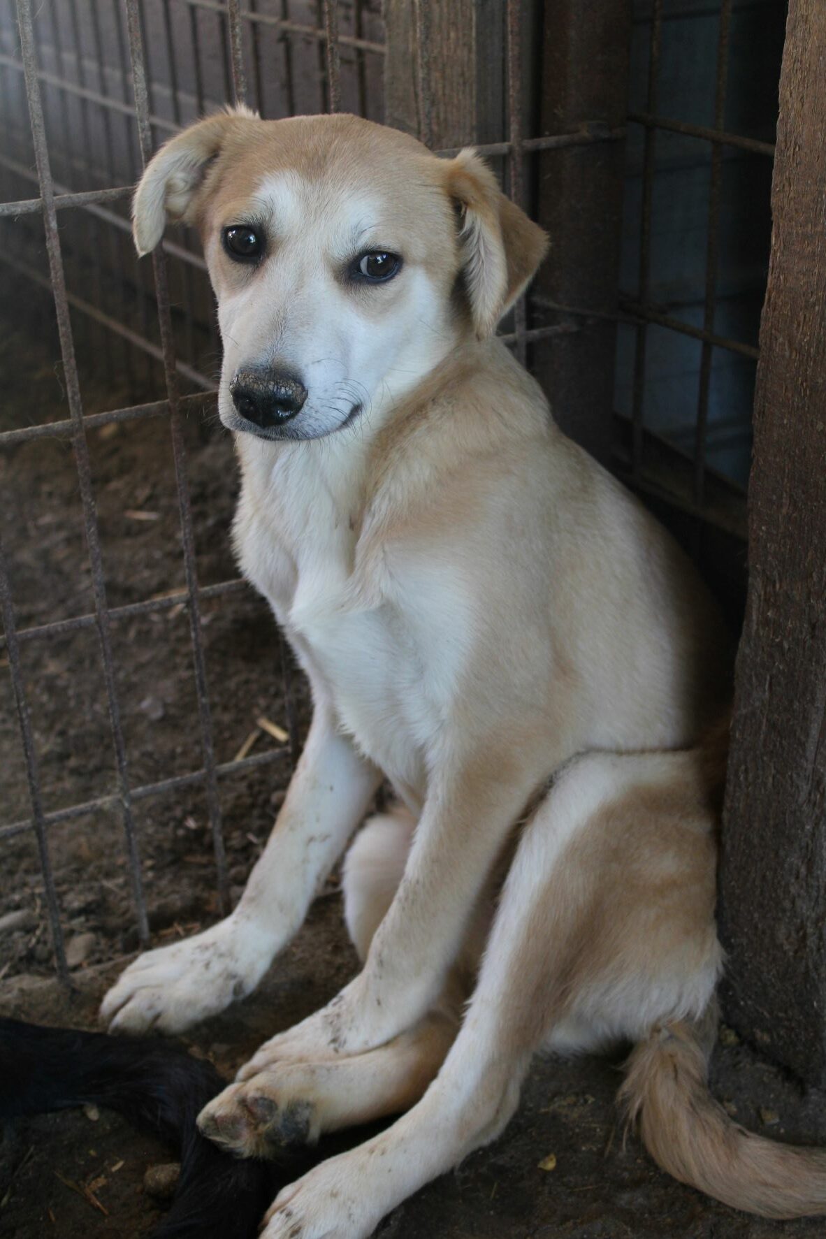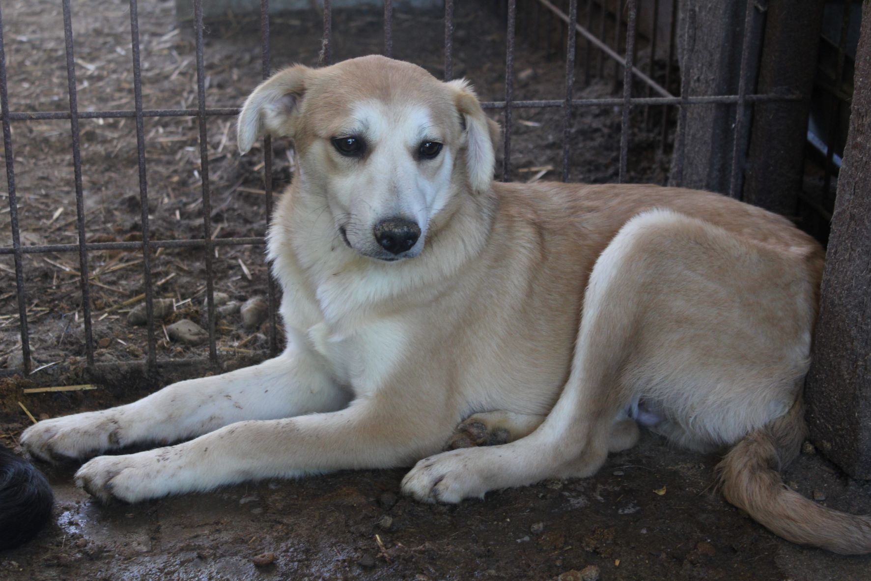 LUDGER heute so zu sehen tut einfach in der Seele weh. Nichts hat sich an seiner Beschreibung von vor einem Jahr für ihn geändert. Wir dachten anfangs, dass da eine toter Hund in der Hütte liegt, da LUDGER überhaupt keine Regung gezeigt hat, als wir in seinen Kennel gingen. Sehr selten oder noch nie habe ich so einen jungen Hund gesehen, der scheinbar völlig abgeschlossen hat mit seinem Leben. Er reagierte auf nichts, er lässt sich sogar streicheln ohne eine Regung zu zeigen. Fast wie eine Puppe, da ist null Lebensfreude in ihm. Er kennt kein schönes Leben und das merkt man ihm an.Er nimmt keine Leckerlis aus der Hand, wir haben aber gesehen, dass er unsere in die Hütte gelegten Leckerlis später frass. Betroffen sind wir aus seinem Kennel gegangen, in dem er seit Jahren sitzen muss.