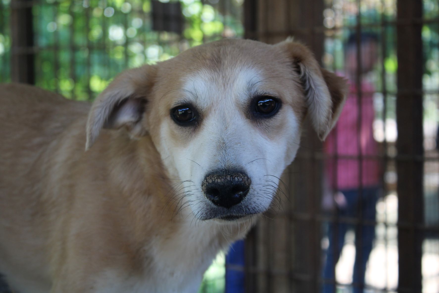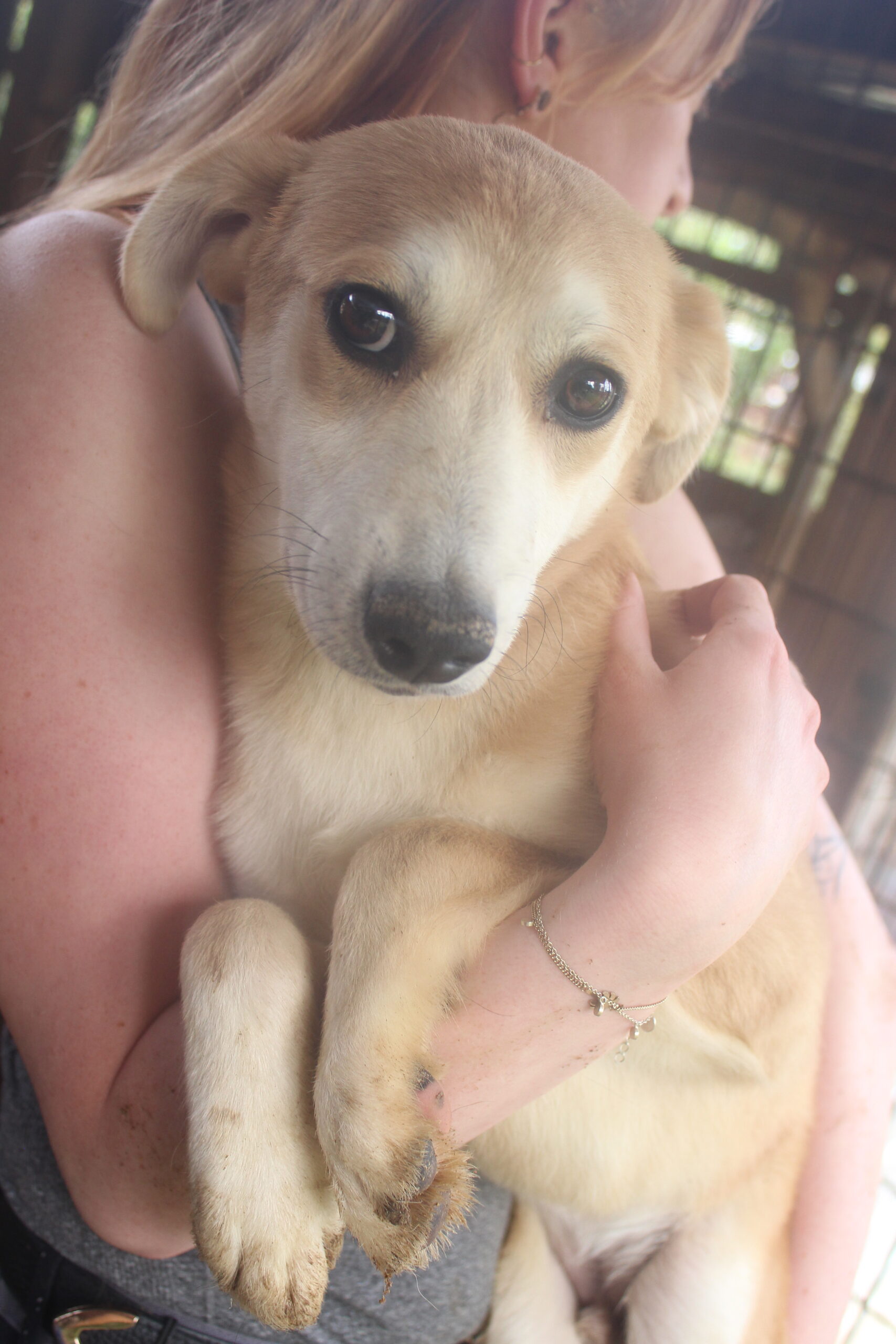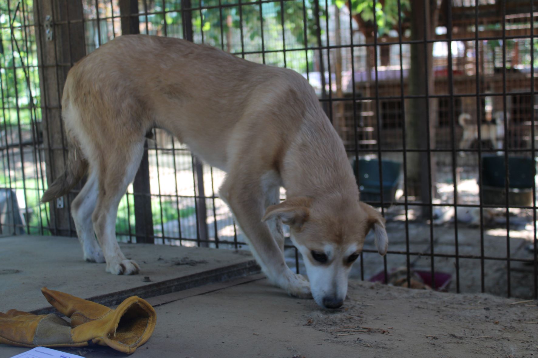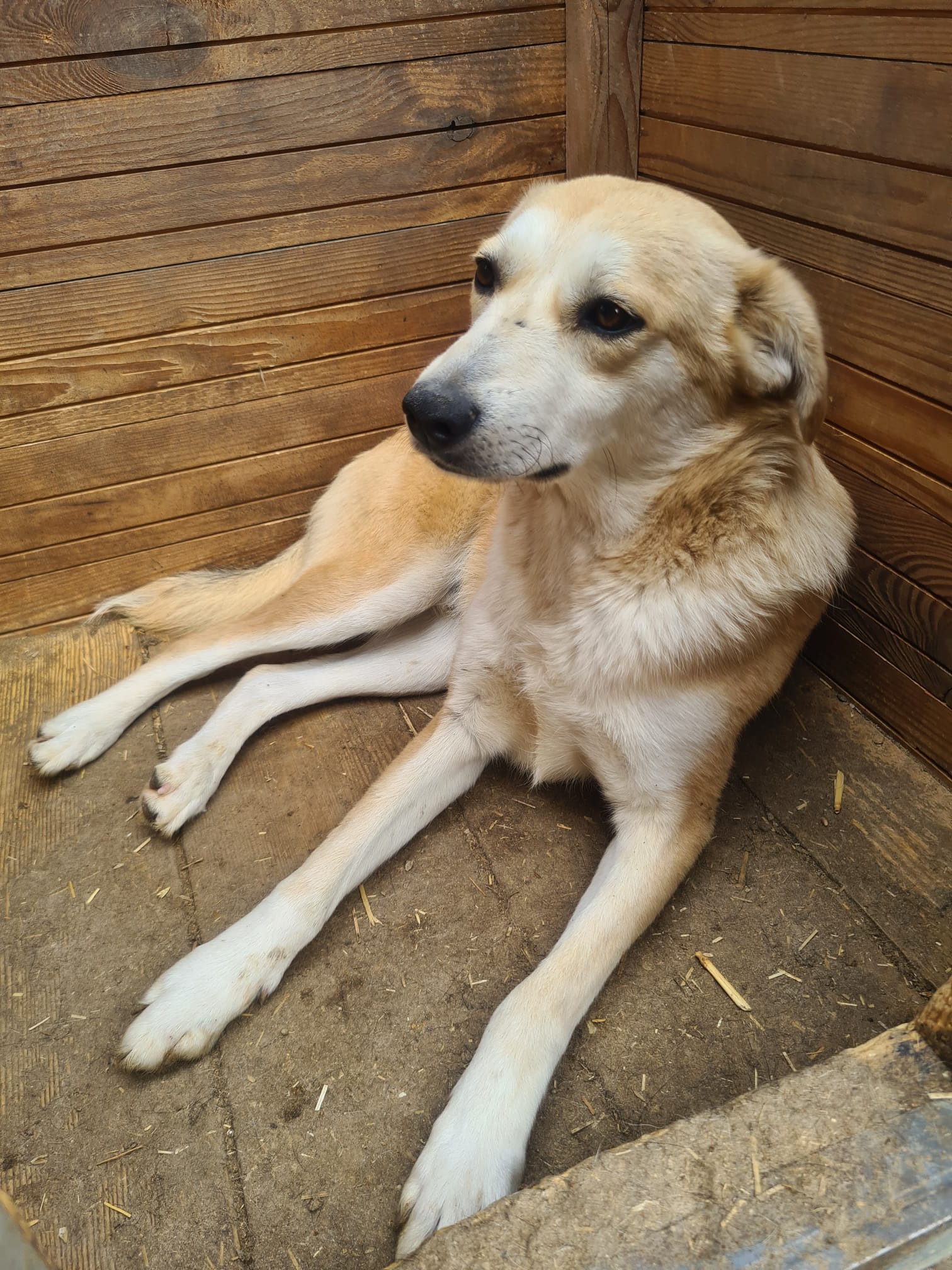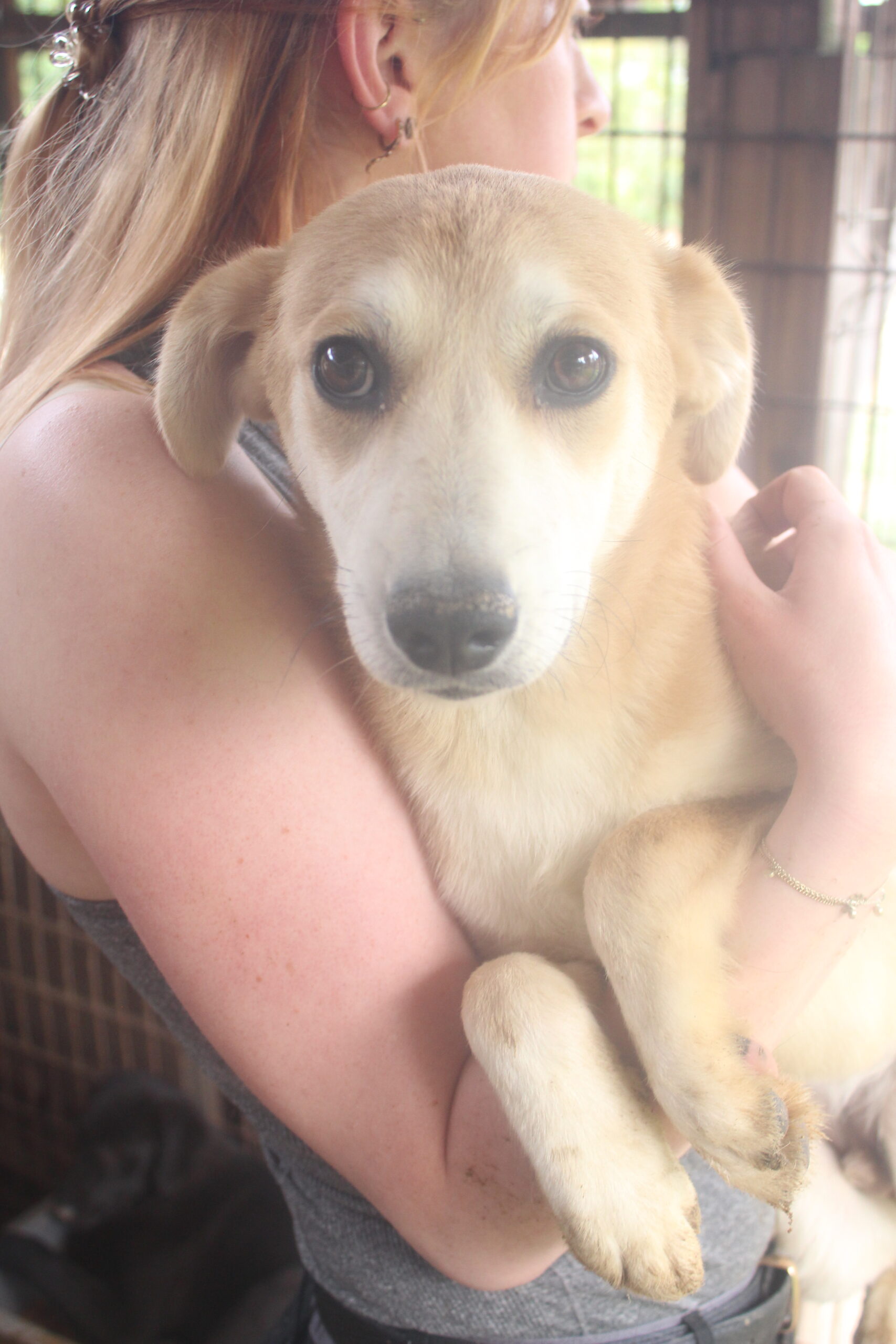 LUDGER heute so zu sehen tut einfach in der Seele weh. Nichts hat sich an seiner Beschreibung von vor einem Jahr für ihn geändert. Wir dachten anfangs, dass da eine toter Hund in der Hütte liegt, da LUDGER überhaupt keine Regung gezeigt hat, als wir in seinen Kennel gingen. Sehr selten oder noch nie habe ich so einen jungen Hund gesehen, der scheinbar völlig abgeschlossen hat mit seinem Leben. Er reagierte auf nichts, er lässt sich sogar streicheln ohne eine Regung zu zeigen. Fast wie eine Puppe, da ist null Lebensfreude in ihm. Er kennt kein schönes Leben und das merkt man ihm an.Er nimmt keine Leckerlis aus der Hand, wir haben aber gesehen, dass er unsere in die Hütte gelegten Leckerlis später frass. Betroffen sind wir aus seinem Kennel gegangen, in dem er seit Jahren sitzen muss.