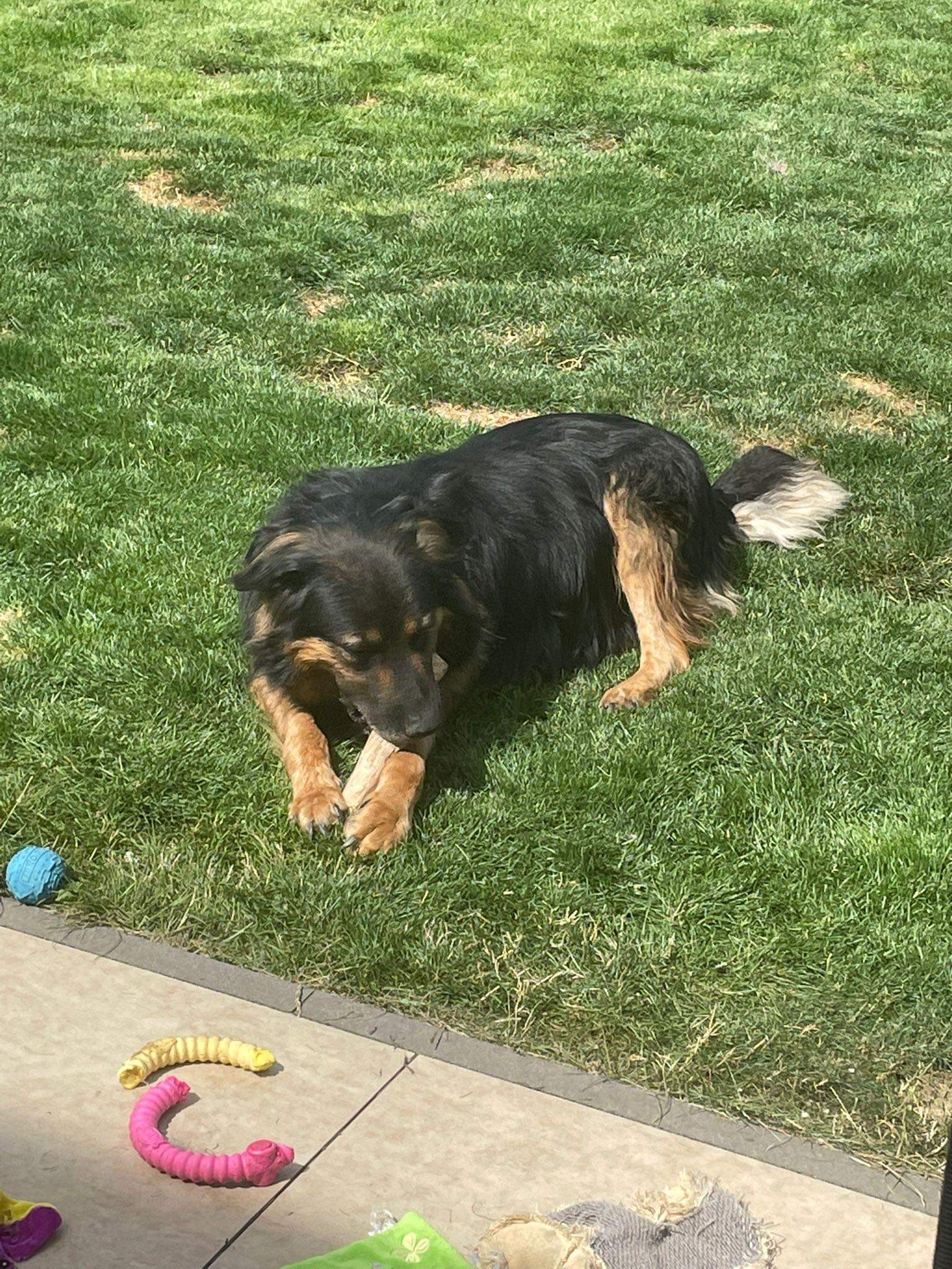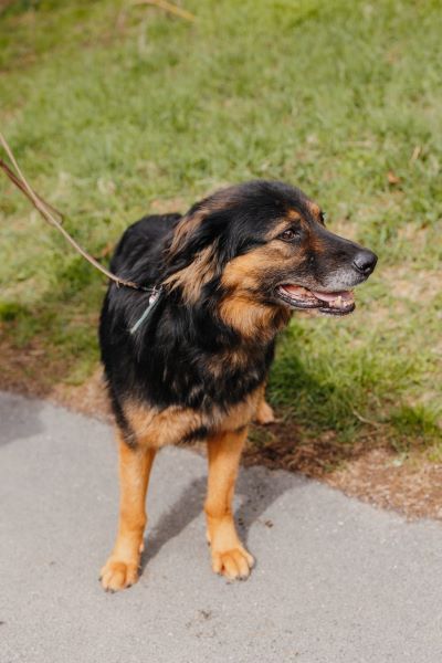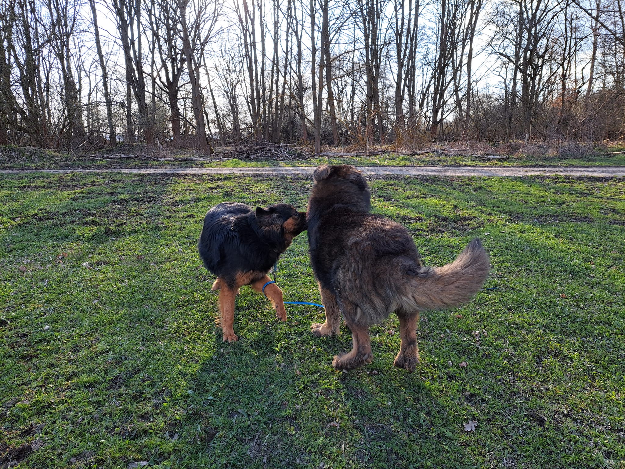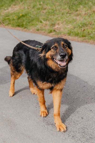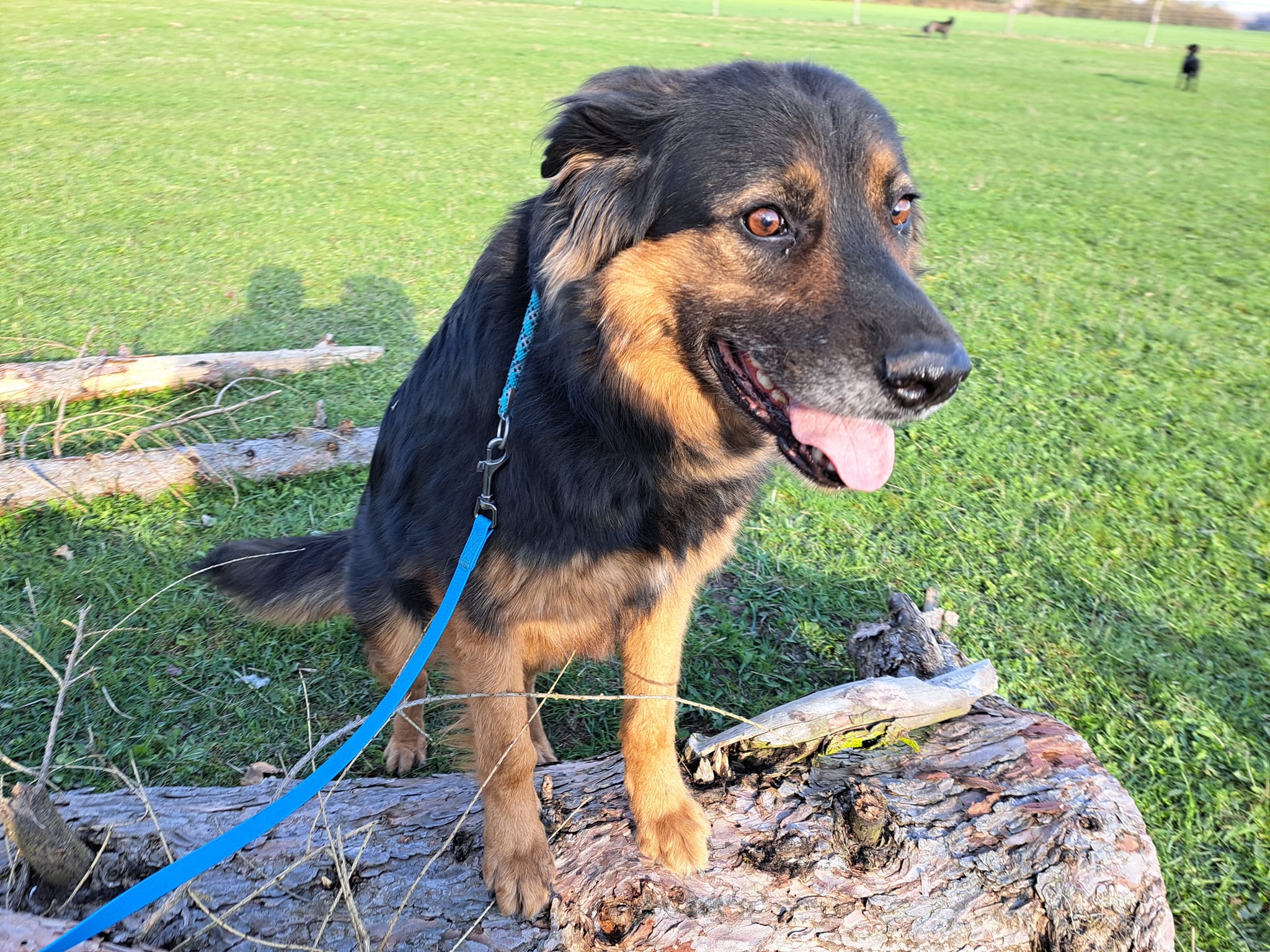 Gesundheitlich zeigt er sich sehr fit: er tobt mit den anderen herum, klettert gern auch mal und auf Spaziergängen kann er mit Elan ziehen. Sein Herzwurmbefall ist behandelt und der aktuelle Bluttest lässt uns positiv in die Zukunft blicken – hier gibt es nur noch einen unsicheren Wert, den wir im Auge behalten.