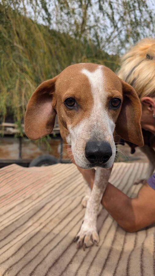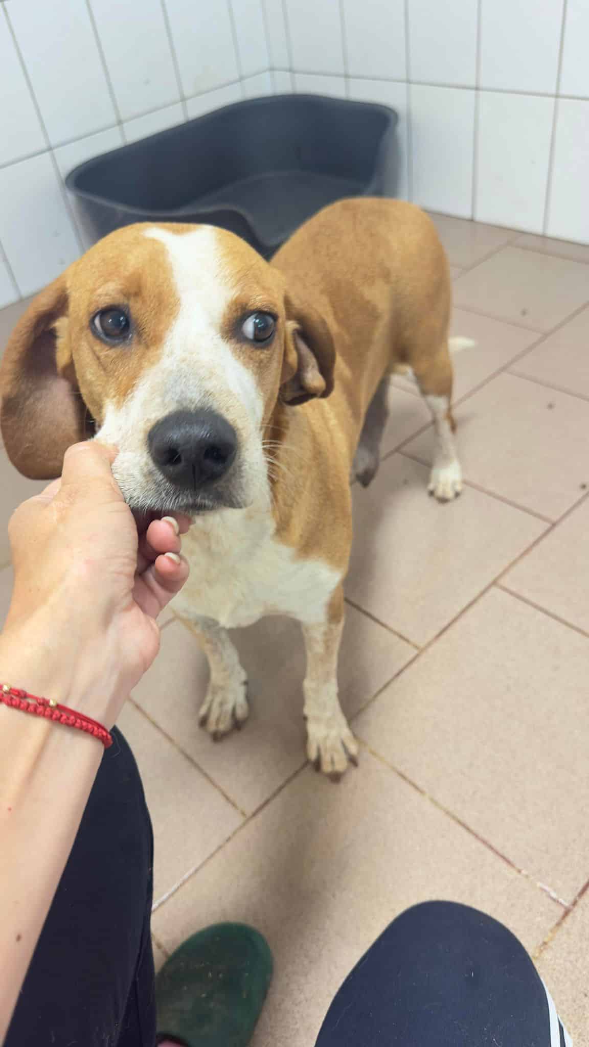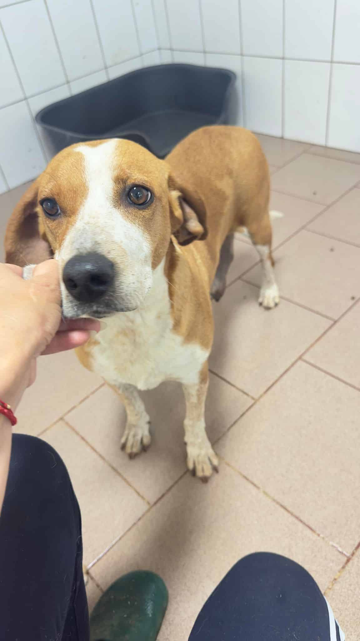 Die hübsche Beagle Mix Hündin LUISE zeigt sich weiterhin freundlich und aufgeschlossen. Sie lies sich problemlos hochnehmen und wartete geduldig bis alle Bilder für das Update im Kasten waren.